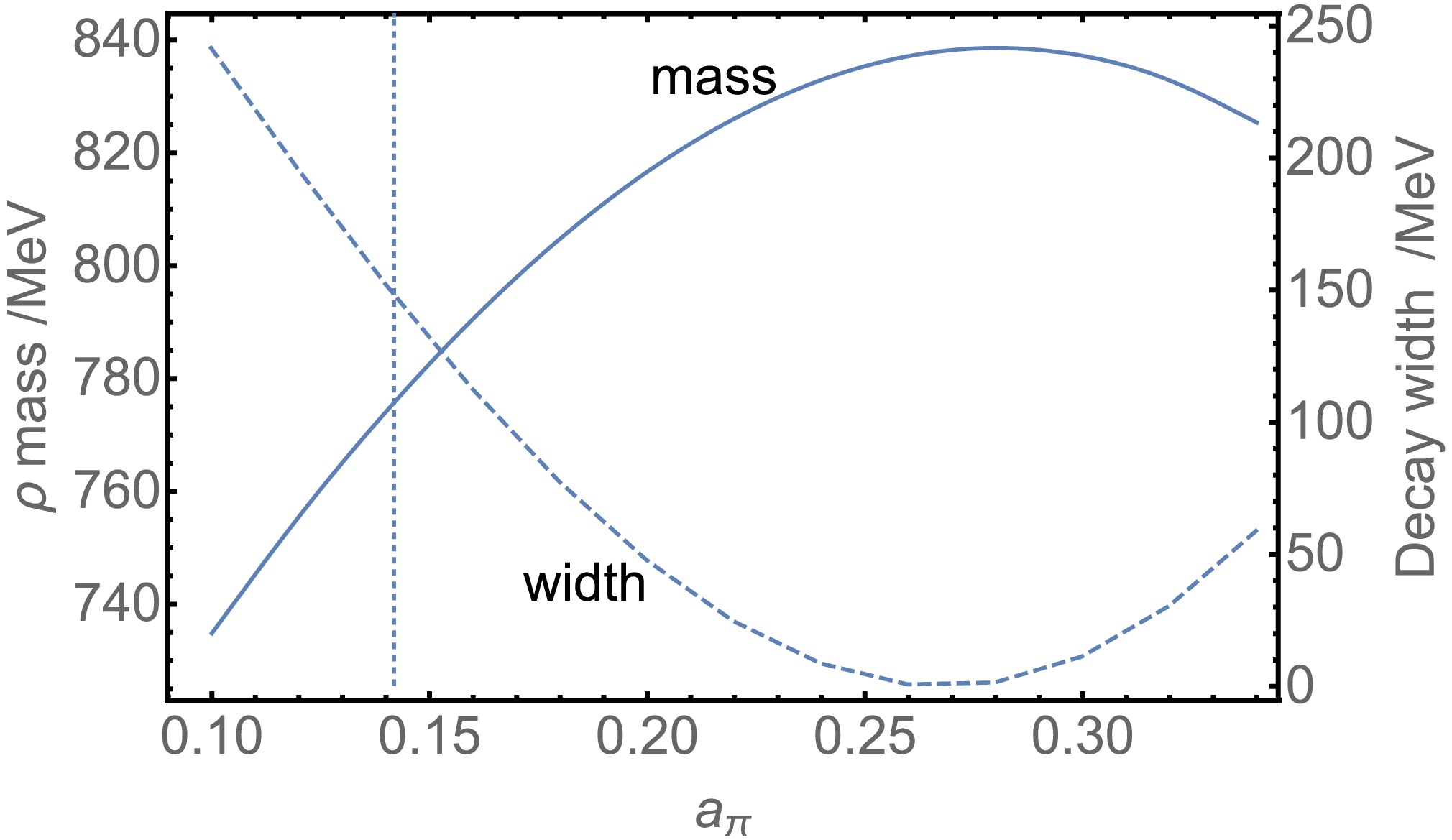 This paper presents novel framework for analyzing unstable composite particles using Green's functions and dispersion relations. As an illustrative example, we explore the ρ vector meson decay process\begin{document}$\rho\to\pi\pi$\end{document} within the Nambu–Jona-Lasinio (NJL) model. This approach addresses a key limitation of the four-quark interaction description, which adequately describes two-quark bound states but fails to describe decay processes. The Bethe-Salpeter (BS) wave function of the ρ meson exhibits time evolution that leads to the physical mass M incorporating a correction \begin{document}$\Delta M $\end{document} . This correction depends on the decay width \begin{document}$\Gamma(M)$\end{document} . This work provides crucial insights into the dynamical relationship between resonance masses and their decay properties, addressing a long-standing challenge in hadron physics. The calculated mass and width are in good agreement with the experimental values, demonstrating the effectiveness of this approach for studying unstable hadronic systems beyond conventional bound-state approximations.