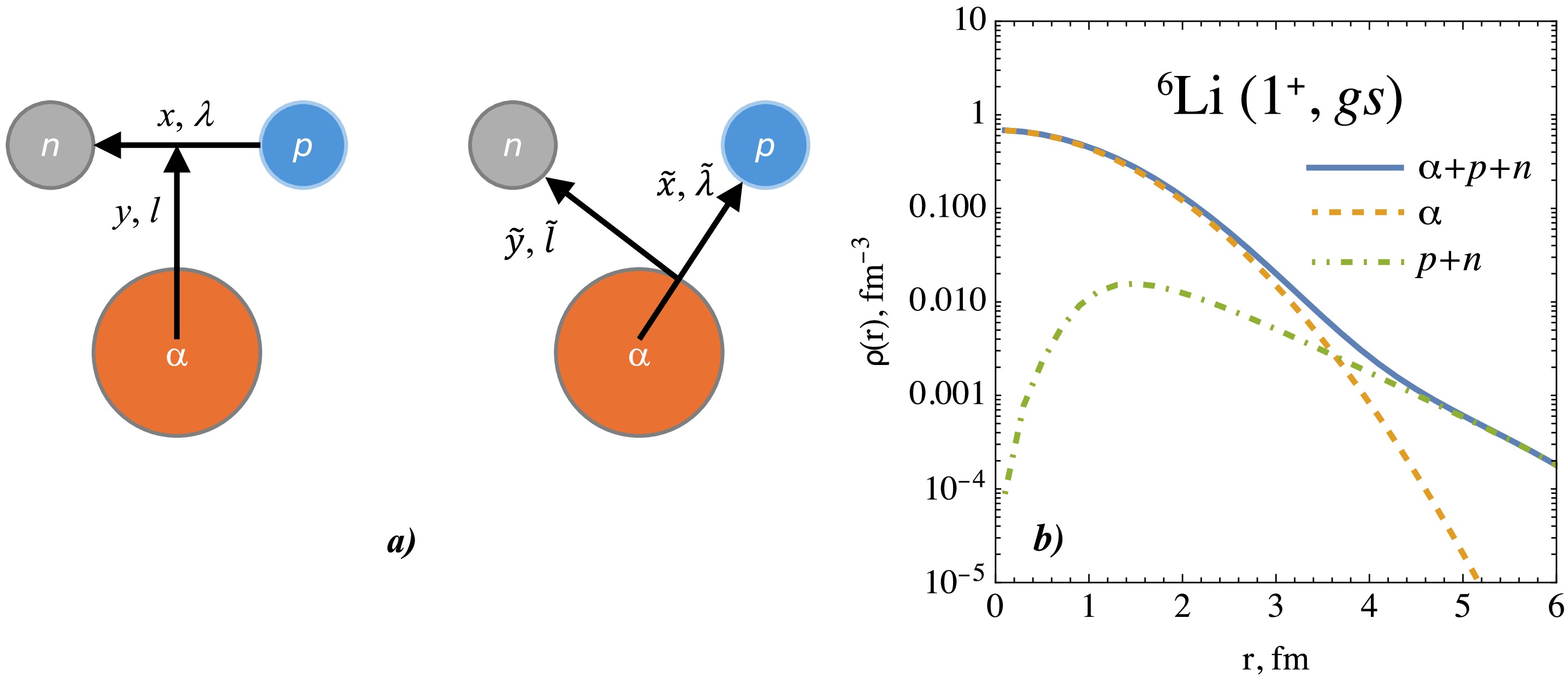 This study presents a combined experimental and theoretical investigation of the 6Li + 12C nuclear reaction at a laboratory energy of 68 MeV. The reaction products are identified via the standard\begin{document}$ \Delta E $\end{document} –E technique. Angular distributions are constructed for the elastic, inelastic, and deuteron transfer channels by detecting emitted particles – 6Li and α. Elastic and inelastic scattering of 6Li off 12C are analyzed using the optical model and coupled channels approaches, with the interaction described by a double-folding potential. This potential is calculated based on the three-body wave function of 6Li. Pronounced coupled-channel effects that modify the potential and allow accurate reproduction of the experimental cross sections are observed. The resulting polarized potentials provide a more precise description of the initial-state interaction for further reaction modeling. The deuteron transfer channel, 12C(6Li, α)14N, is studied using the coupled reaction channels method. The coupling between the transfer and elastic channels is implemented using the three-body wave function of 6Li. As an alternative, a regular wave function constructed with a phenomenological Woods–Saxon potential is also employed. Comparison between the calculated differential cross sections and experimental data reveals a more complex and nuanced reaction mechanism, which supports the cluster structure of 6Li.