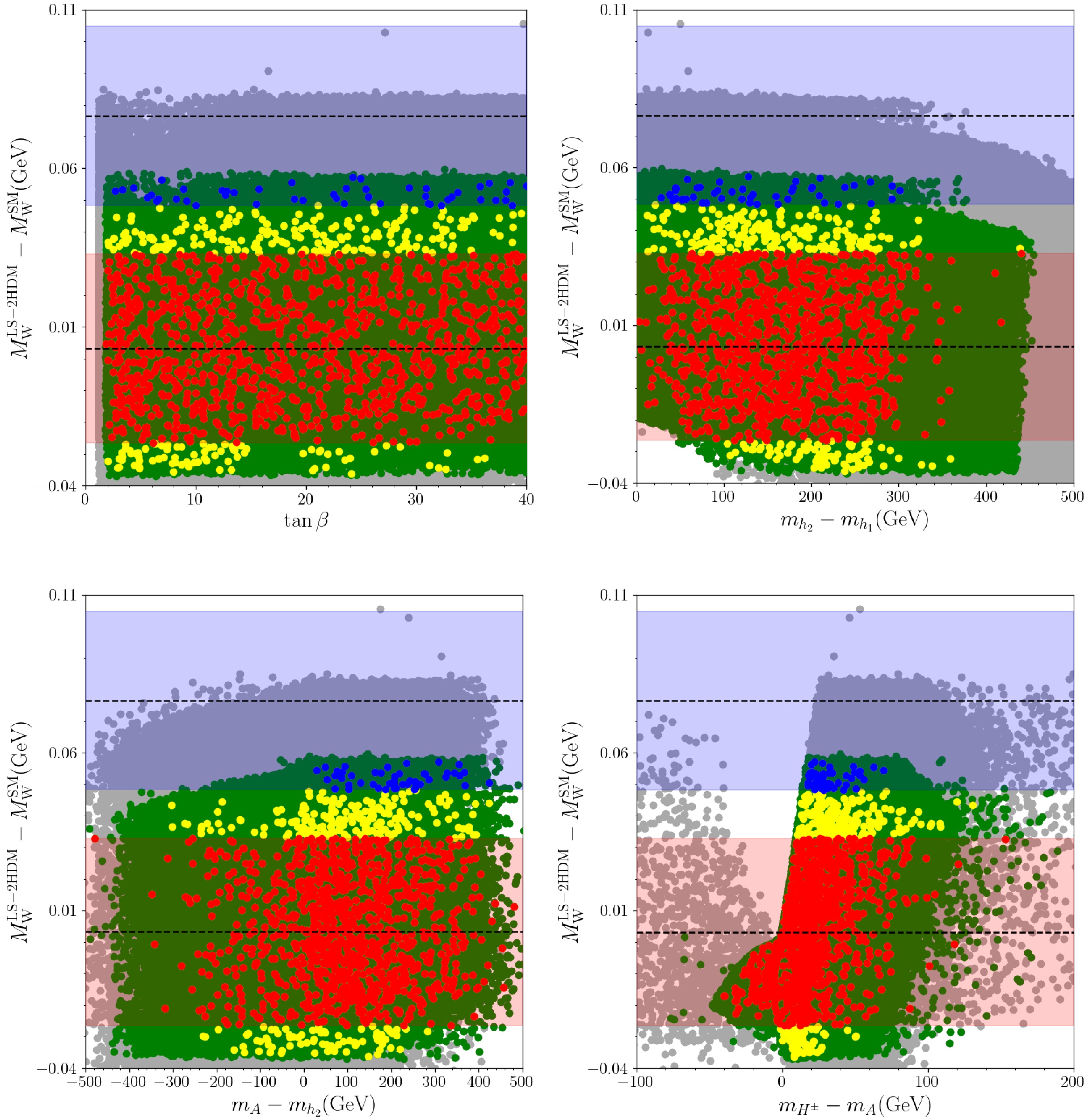 In 2022, the collider detector at Fermilab (CDF) collaboration reported the W-boson mass (\begin{document}$ M_W= $\end{document} \begin{document}$ 80.4335\pm0.0094\; \text{GeV} $\end{document} ), which deviates from the standard model (SM) prediction (\begin{document}$ M_W^{\rm SM}=80.357\pm0.006\; \text{GeV} $\end{document} ) by ~\begin{document}$ 7\sigma $\end{document} . In contrast, the CMS collaboration obtained \begin{document}$ M_W=80.3602\pm0.0099\; \text{GeV} $\end{document} , which was very close to the SM global electroweak fit value of \begin{document}$ \sim80.357\; \text{GeV} $\end{document} . Motivated by this situation, we reassess the W-boson mass within the lepton-specific two Higgs doublet model (LS-2HDM). To this end, we perform random scans (generated with SARAH 4.13.0 and evaluated with SPheno 4.0.3) and confront the results with up-to-date theoretical and experimental constraints. The scan enforces vacuum stability, perturbative unitarity, and perturbativity; electroweak precision observables via the oblique parameters \begin{document}$ (S,T,U) $\end{document} ; LEP bounds on \begin{document}$ H^\pm $\end{document} ; rare B-meson decays; lepton flavor universality (LFU) in Z and τ decays; and 13 TeV LHC searches for additional Higgs bosons. Viable points are further tested with HiggsTools (HiggsSignals + HiggsBounds). In the LS-2HDM, if \begin{document}$ h_1 $\end{document} is the SM-like Higgs at \begin{document}$ m_{h_1}\simeq125 $\end{document} GeV with \begin{document}$ |\cos(\beta-\alpha)|\lesssim0.06 $\end{document} , \begin{document}$ 17\lesssim\tan\beta\lesssim39 $\end{document} , \begin{document}$ 144\lesssim m_{h_2}\lesssim414 $\end{document} GeV, and \begin{document}$ 435\lesssim m_{A,H^{\pm}}\lesssim685 $\end{document} GeV, the model reproduces the 2024 CMS W-boson mass within \begin{document}$ 3\sigma $\end{document} . Solutions near the 2022 CDF value (\begin{document}$ M_W=80.4335\pm0.0094\; \text{GeV} $\end{document} ) survive; however, after applying all constraints, including HiggsTools, they approach it at best within \begin{document}$ \lesssim2\sigma $\end{document} . Our findings emphasize that LS-2HDM favors the CMS results consistently with the current experimental results. Although one can theoretically accommodate the CDF results in this model, up-to-date electroweak precision bounds on oblique parameters \begin{document}$ (S,T,U) $\end{document} with the SM-like Higgs and LFU constraints exclude these solutions. Our results for \begin{document}$ W $\end{document} -boson mass can only be as close as about \begin{document}$ 2\sigma $\end{document} to the CDF results.