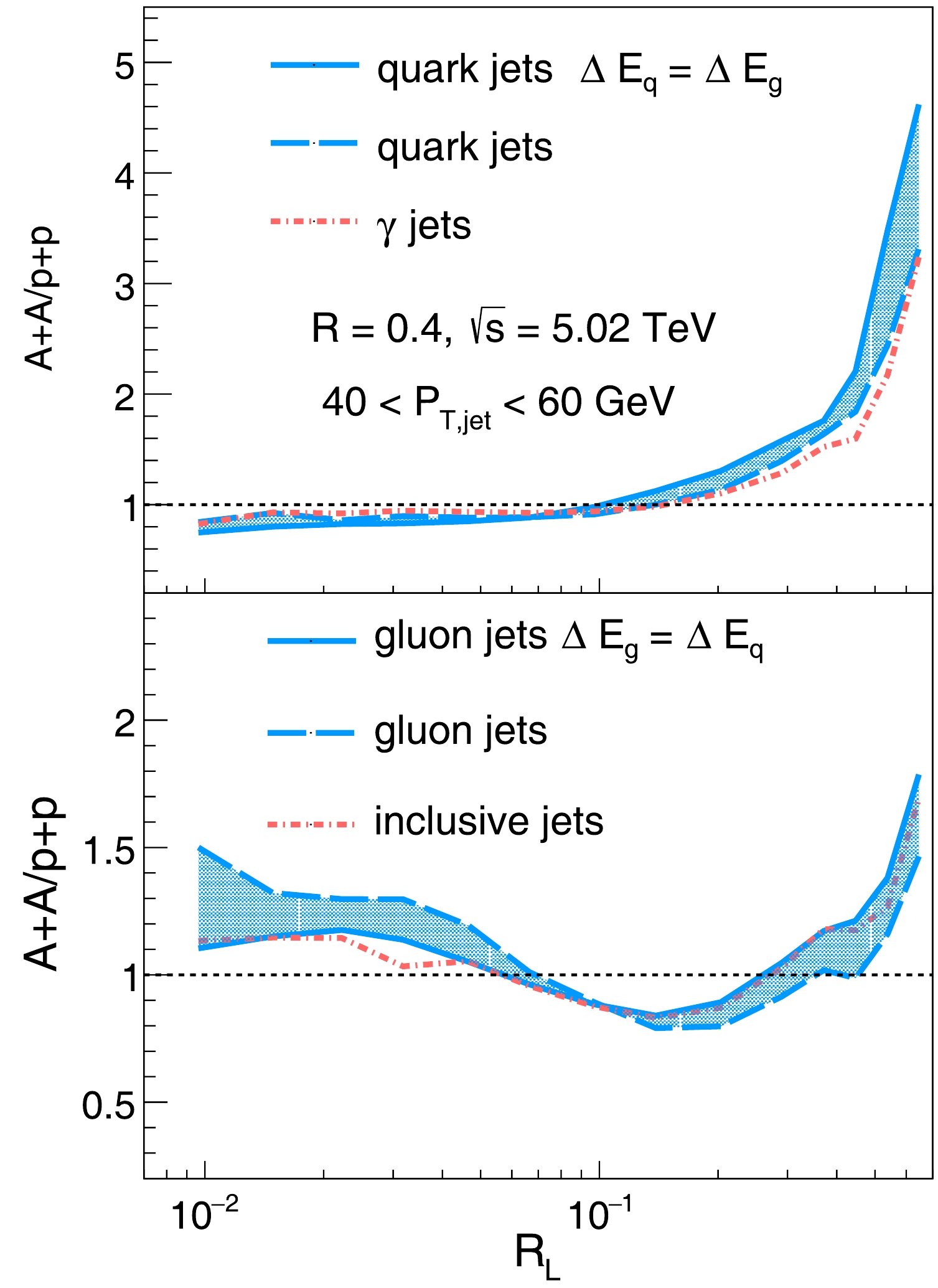 We present a systematic investigation of flavor-dependent jet quenching using energy-energy correlators (EEC) in\begin{document}$ \sqrt{s}=5.02 $\end{document} TeV Pb+Pb collisions. Employing the improved SHELL model, which incorporates collisional and radiative energy loss, as well as medium response, we quantify distinct quenching signatures for quark and gluon jets. Key findings include: (1) Pure quark jets exhibit strong EEC enhancement at large angular scales, while gluon jets show a bimodal enhancement pattern at small and large scales; (2) Dual-shift decomposition in the EEC ratio reveals shifts toward large angles is primarily driven by energy loss, while small-\begin{document}${R_{{\rm{L}}}}$\end{document} shifts extend beyond selection bias and indicate intrinsic enhancement of the gluon-initiated jets; (3) Quark jets experience global suppression of averaged energy weight \begin{document}$ \langle{\rm{weight}}\rangle({R_{{\rm{L}}}}) $\end{document} , whereas gluon jets exhibit concentration toward small \begin{document}${R_{{\rm{L}}}}$\end{document} ; (4) Mechanism decomposition identifies elastic energy loss concentrating \begin{document}$ \langle{\rm{weight}}\rangle({R_{{\rm{L}}}}) $\end{document} toward small \begin{document}${R_{{\rm{L}}}}$\end{document} , radiative loss dominating quark jet modification, and medium response amplifying large \begin{document}${R_{{\rm{L}}}}$\end{document} enhancement via soft hadrons. The observed flavor dependence in EEC modifications is dominantly driven by intrinsic jet structure differences rather than medium-induced mechanisms. We propose photon-tagged jets as quark proxies and inclusive charged-hadron jets as gluon proxies, demonstrating that they reproduce the respective flavor-specific quenching patterns. Our work establishes the EEC as a precision probe of color-charge-dependent jet-medium interactions, providing new constraints for the detailed \begin{document}$ \hat{q} $\end{document} extraction and QGP tomography, while highlighting the critical role of pre-quenching flavor asymmetries.
