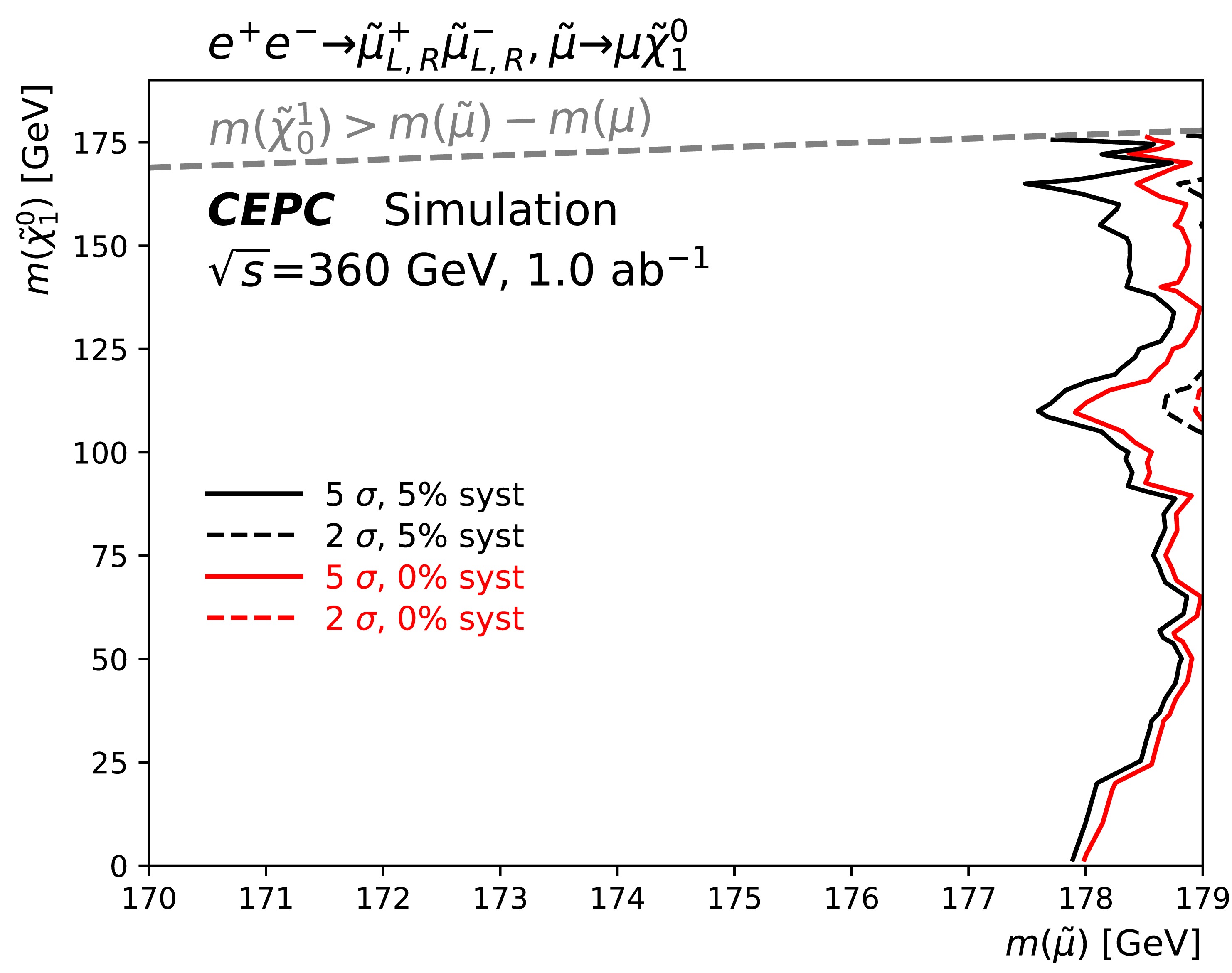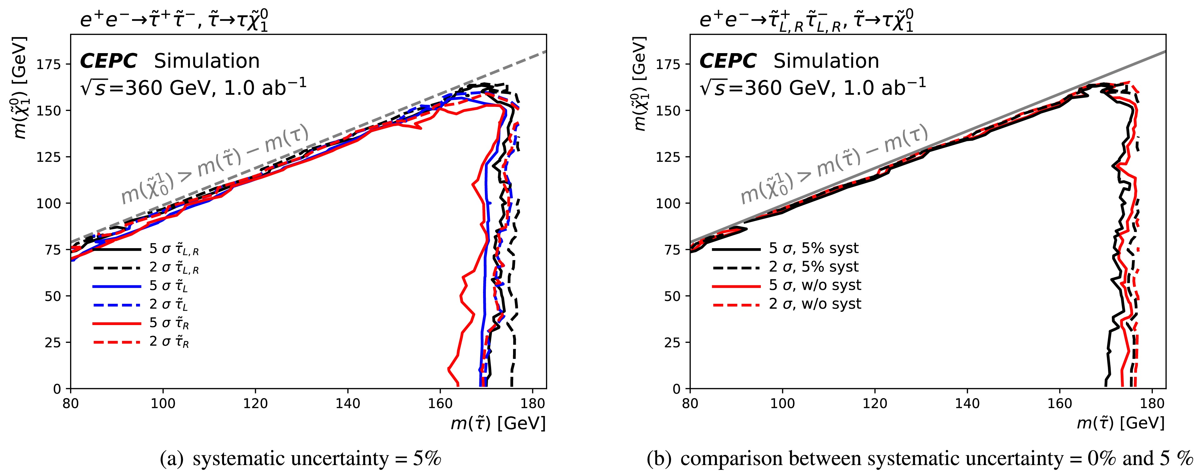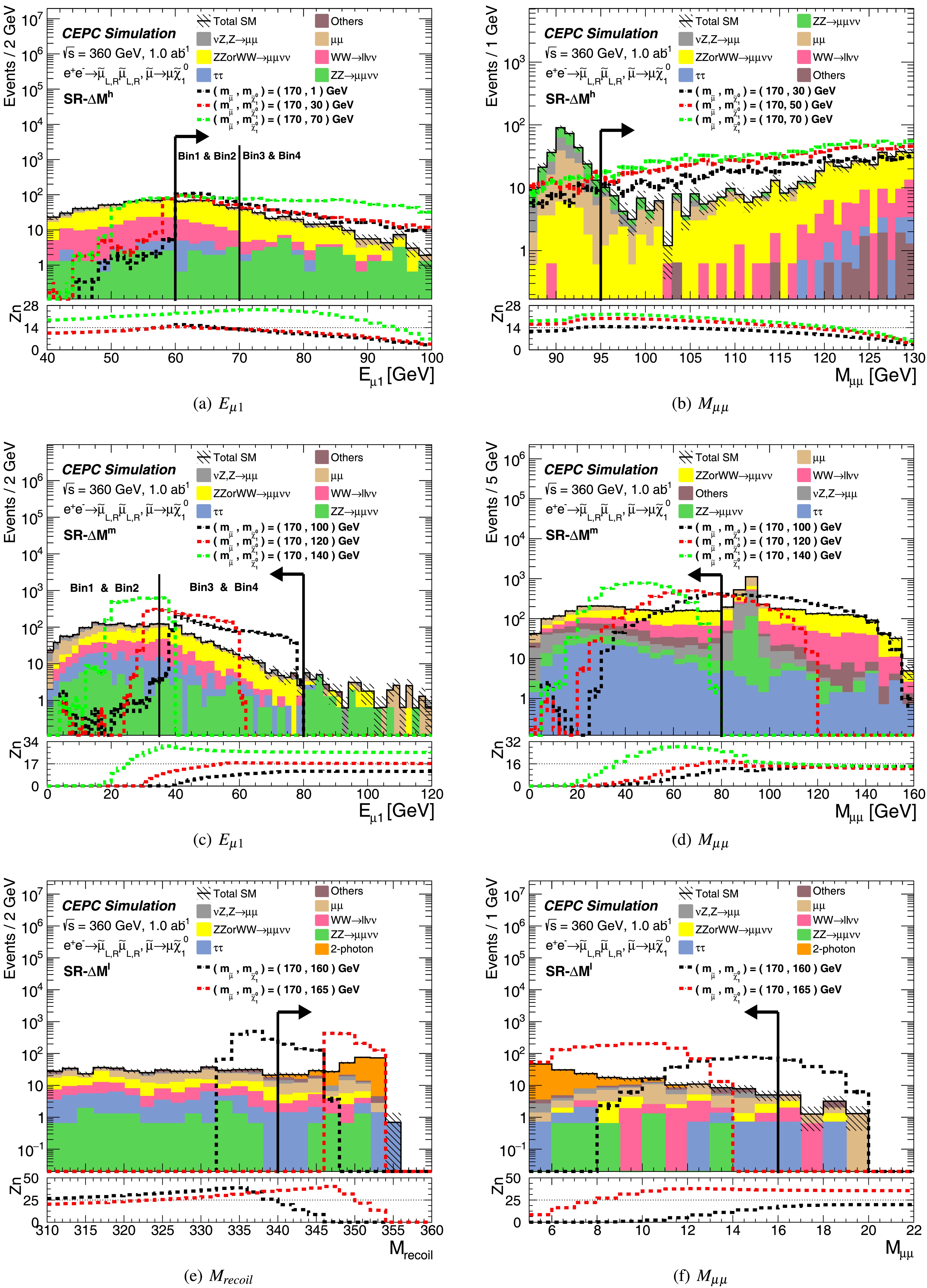 The Circular Electron Positron Collider (CEPC) is designed to operate at key center-of-mass energies: 91.2 GeV as a Z factory for precision Z boson studies, ≈ 160 GeV at the threshold for W boson pair production, and 240 GeV as a Higgs factory for copious Higgs boson production. It can be upgraded to 360 GeV (CEPC-360 GeV) for enabling top quark-antiquark (\begin{document}$ t\bar{t}$\end{document} ) pair production. Beyond enabling high-precision measurements of the Standard Model (SM), CEPC-360 GeV is uniquely positioned to perform searches for new physics beyond the SM (BSM), serving as a valuable complement to hadron colliders. This paper presents a sensitivity study on the direct pair production of staus and smuons at the CEPC with \begin{document}$ \sqrt{s}$\end{document} = 360 GeV, conducted via full Monte Carlo simulation. Under the assumptions of 1.0 ab−1 integrated luminosity and a flat 5% systematic uncertainty, CEPC-360 GeV could potentially discover the combined production of left-handed and right-handed staus up to a mass of 170 GeV (if they exist) or up to 169 for pure left-handed staus and 162 GeV for pure right-handed staus. For direct smuon production, the discovery potential reaches up to 178 GeV under the same conditions.