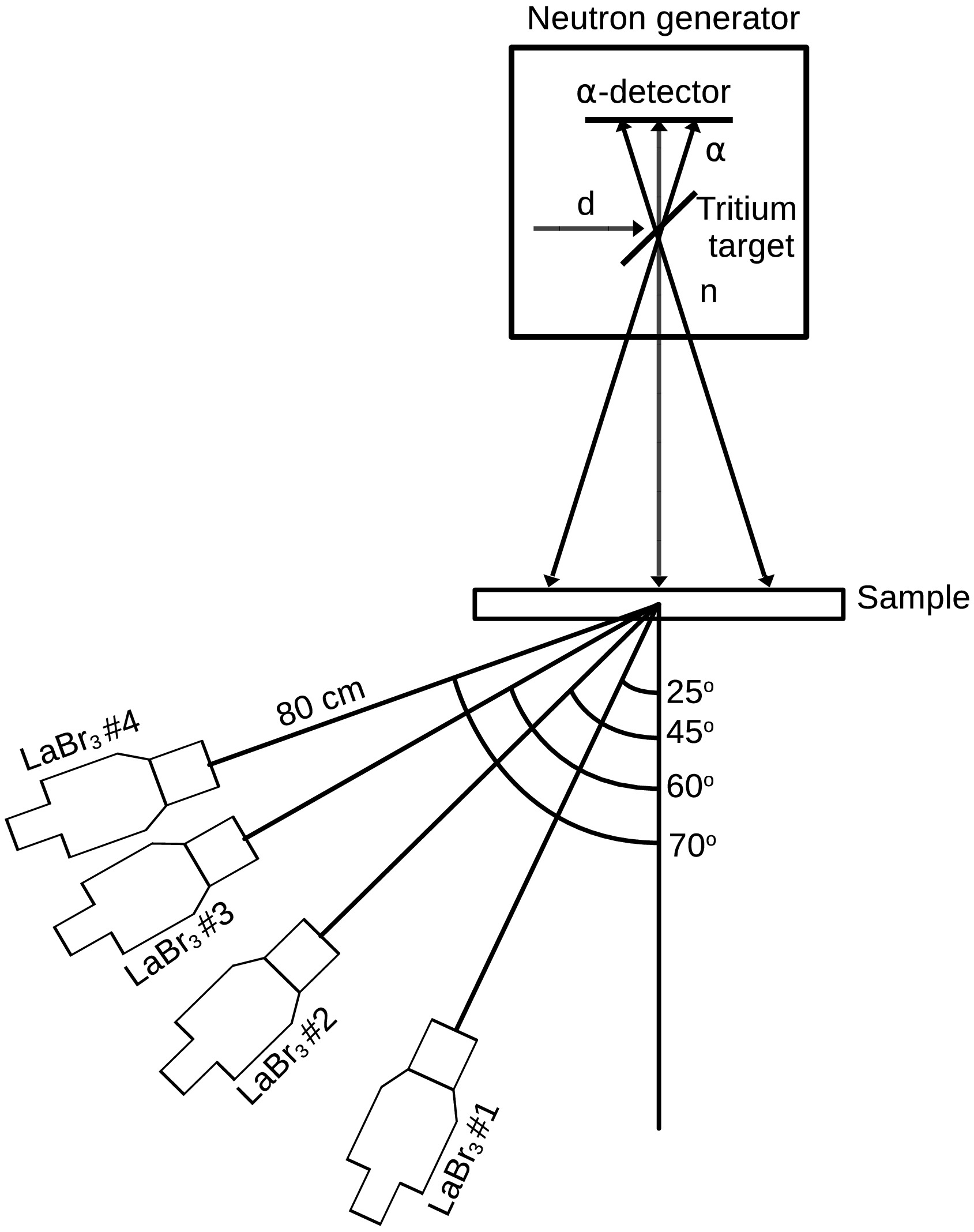 In this work, differential cross sections of\begin{document}$ \gamma $\end{document} -ray emission produced in nuclear reactions induced by 14.1 MeV neutrons are measured for the 4.439 MeV line from carbon, as well as for 10 individual \begin{document}$ \gamma $\end{document} -ray lines from aluminum, 6 from silicon, 8 from calcium, 16 from titanium, 6 from chromium, and 14 from iron. The measurements were conducted using the tagged neutron method with four LaBr3(Ce) scintillation detectors positioned at angles of 25°, 45°, 60°, and 70° relative to the generator target – sample center axis. A neutron generator that can produce 16 separate beams of tagged neutrons was employed, which combined with the detector system, enabled the determination of differential cross-sections for 64 distinct angle values in the range of 17° to 89°. To simplify data visualization, the angular distributions were divided into 5° intervals, with weighted mean values of the angle and differential cross-section calculated for each interval. Corrections for multiple neutron scattering and attenuation, \begin{document}$ \gamma $\end{document} -ray attenuation, and total detection efficiency computed using GEANT4 were accounted for in the cross-section calculations. Additional measurements were performed to validate the correction calculations. The total \begin{document}$ \gamma $\end{document} -ray emission cross-sections were obtained by approximating the angular distributions with even-order Legendre polynomial expansions up to the 6th degree, followed by integration over the full solid angle. The total systematic error for the obtained data was estimated as 9.1%.