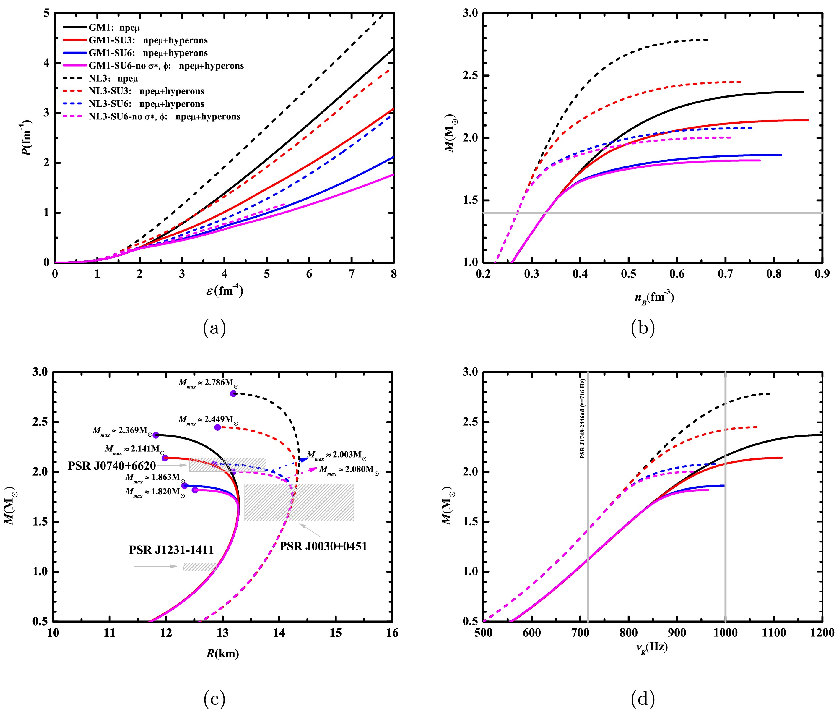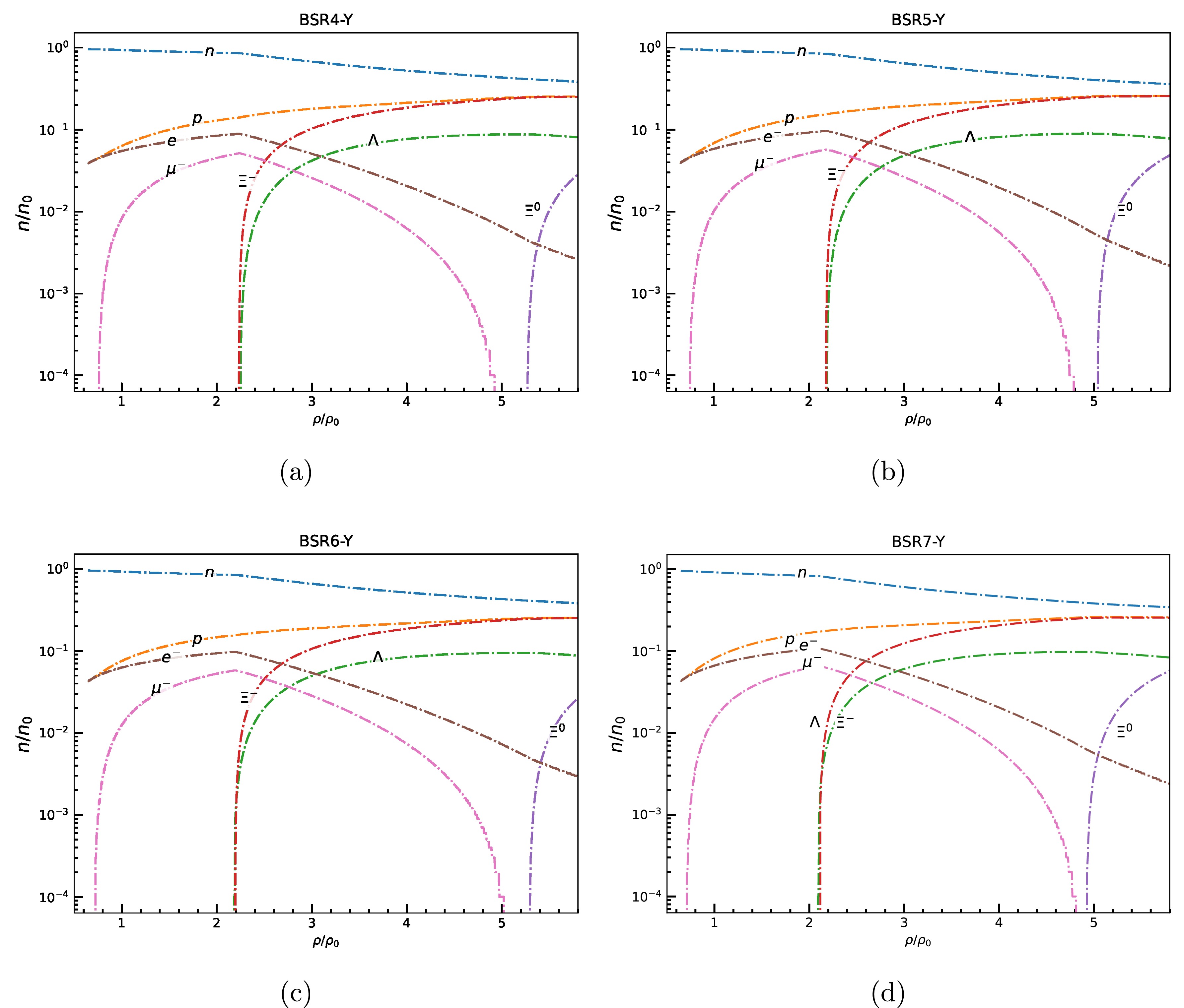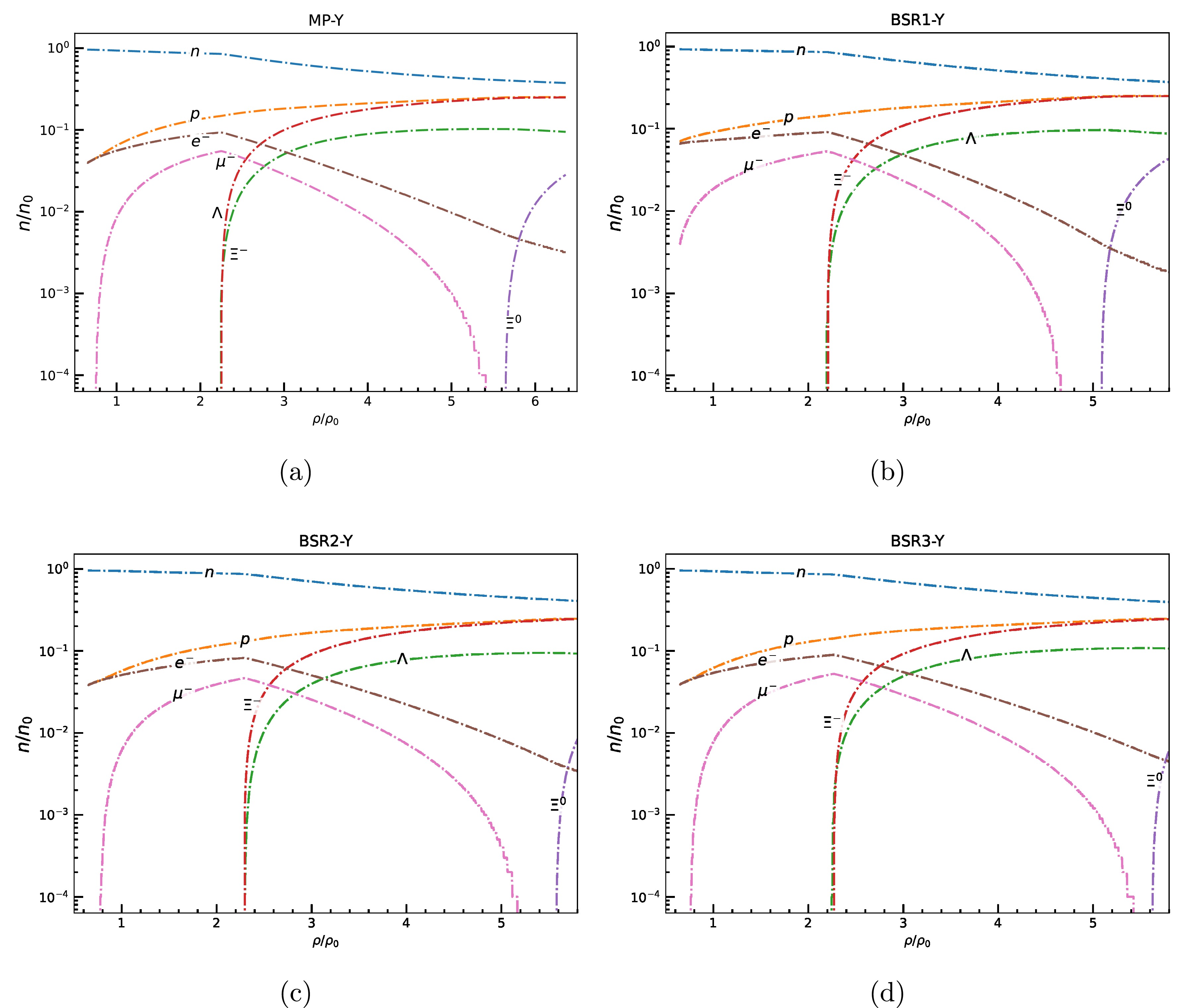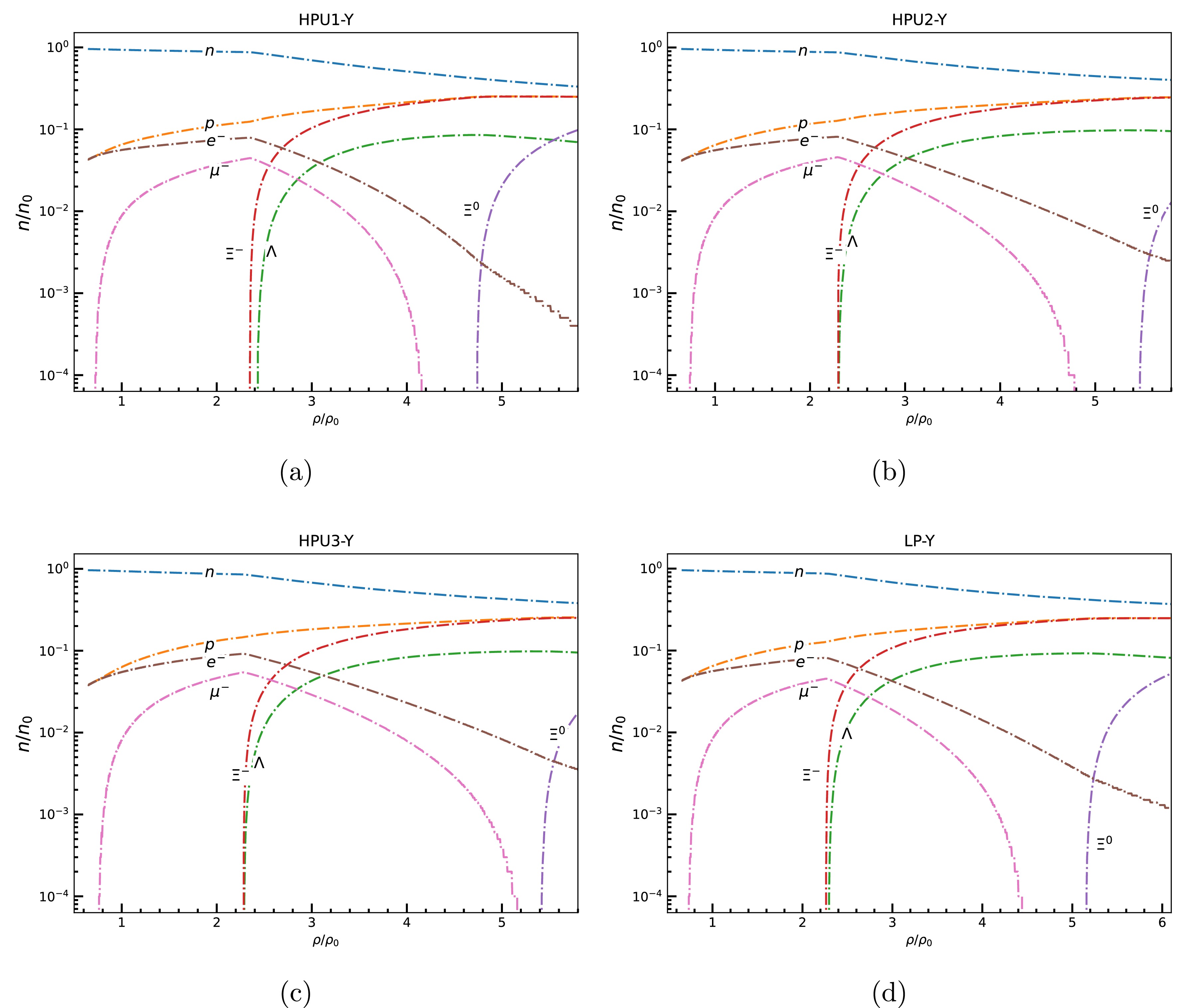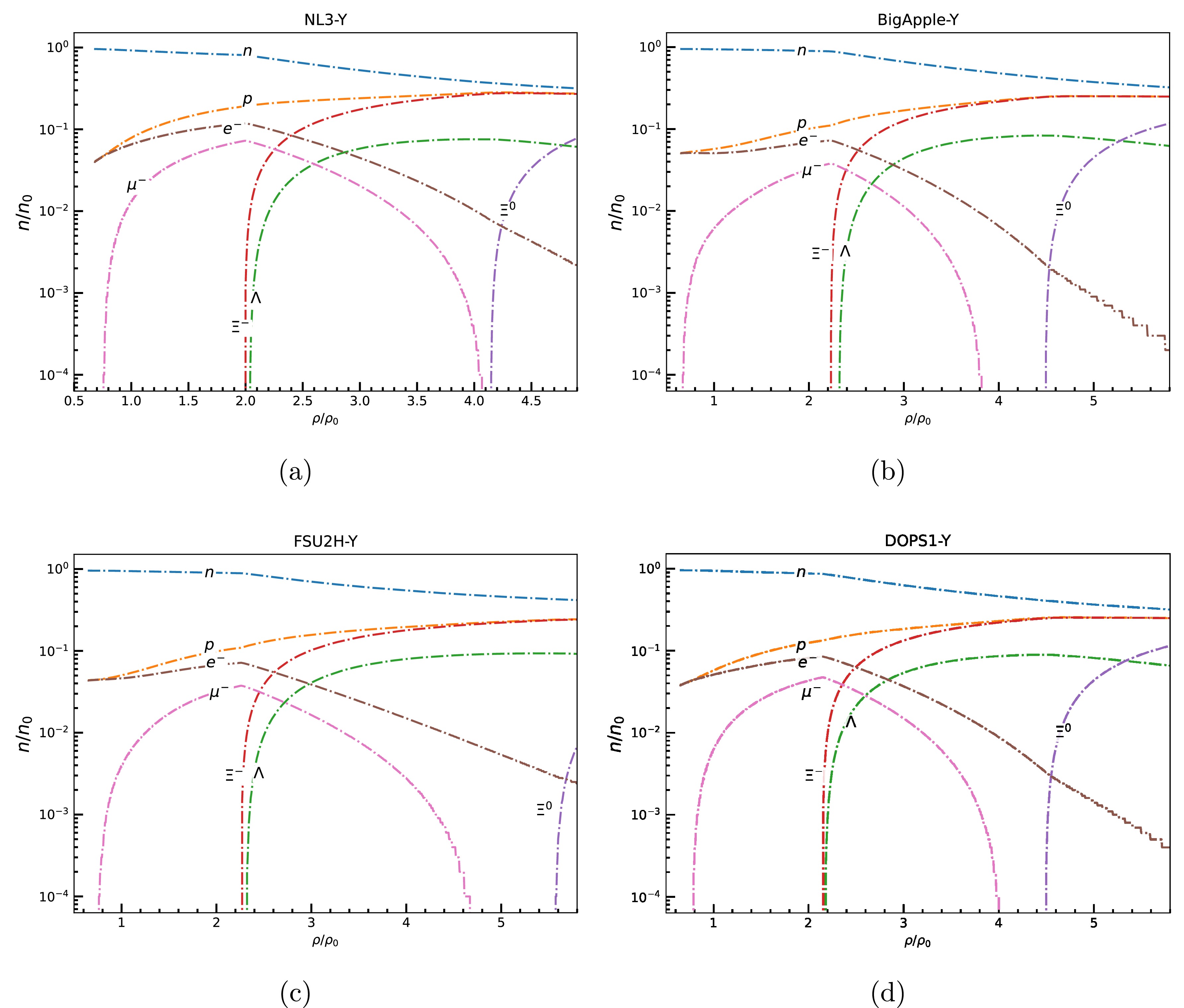 We employ a comprehensive set of relativistic mean-field (RMF) models to investigate the role of hyperons (Λ,\begin{document}$ \Sigma^{\pm,0} $\end{document} , and \begin{document}$ \Xi^{-,0} $\end{document} ) in dense nuclear matter. We consider various RMF models that span a wide range of high-density behaviors of equations of state (EoSs), symmetry energy coefficients, and hyperon-meson coupling schemes. Our aim is to assess how the inclusion of hyperons in nucleonic matter influences the key neutron star properties, including the maximum mass (M\begin{document}$ _{\rm max} $\end{document} ), stellar radius (R\begin{document}$ _{\rm max} $\end{document} ), and tidal deformability (\begin{document}$ \Lambda_{\rm max} $\end{document} ). By varying the vector meson-hyperon coupling strength (\begin{document}$ X_{\omega Y} $\end{document} ) over a wide range and considering the SU(6) symmetry, we find that a decrease in \begin{document}$ X_{\omega Y} $\end{document} results in an increased hyperon population. This leads to a significant softening of the EoS and a reduction in the maximum mass of a neutron star. The models with strong vector repulsion (larger value of \begin{document}$ X_{\omega Y} $\end{document} ) show a dominance of Λ and \begin{document}$ \Xi^- $\end{document} hyperons, with \begin{document}$ \Xi^0 $\end{document} appearing only at higher densities. The neutron star properties, such as M\begin{document}$ _{\rm max} $\end{document} , R\begin{document}$ _{\rm max} $\end{document} , and \begin{document}$ \Lambda_{\rm max} $\end{document} , are strongly affected by the hyperonization for all RMF models. It is observed that the canonical star properties like R\begin{document}$ _{1.4} $\end{document} and \begin{document}$ \Lambda_{1.4} $\end{document} remain largely unaffected by the presence of hyperons in nucleonic EoSs under fixed vector coupling strengths, except when couplings are based on SU(6) symmetry. This behavior can be attributed to the fact that, although hyperons appear in the very centre of a 1.4 M\begin{document}$ _{\odot} $\end{document} star, their population fraction is extremely small and therefore has a negligible effect on global stellar properties like R\begin{document}$ _{1.4} $\end{document} and \begin{document}$ \Lambda_{1.4} $\end{document} . Furthermore, to support a star with observational constraint of M\begin{document}$ _{\rm max} $\end{document} \begin{document}$ \ge $\end{document} 2 M\begin{document}$ _{\odot} $\end{document} , the vector coupling strength X\begin{document}$ _{\omega Y} $\end{document} must lie in the range 0.8−0.9. Our results highlight the critical role of vector coupling strength in governing hyperonization and its impact on neutron star observables. It is found that increasing X\begin{document}$ _{\omega Y} $\end{document} improves compliance with the 2 M\begin{document}$ _{\odot} $\end{document} mass constraint by suppressing early hyperonization. The critical role of the slope of symmetry energy (L) in regulating the impact of hyperonization on neutron star observables is also studied.