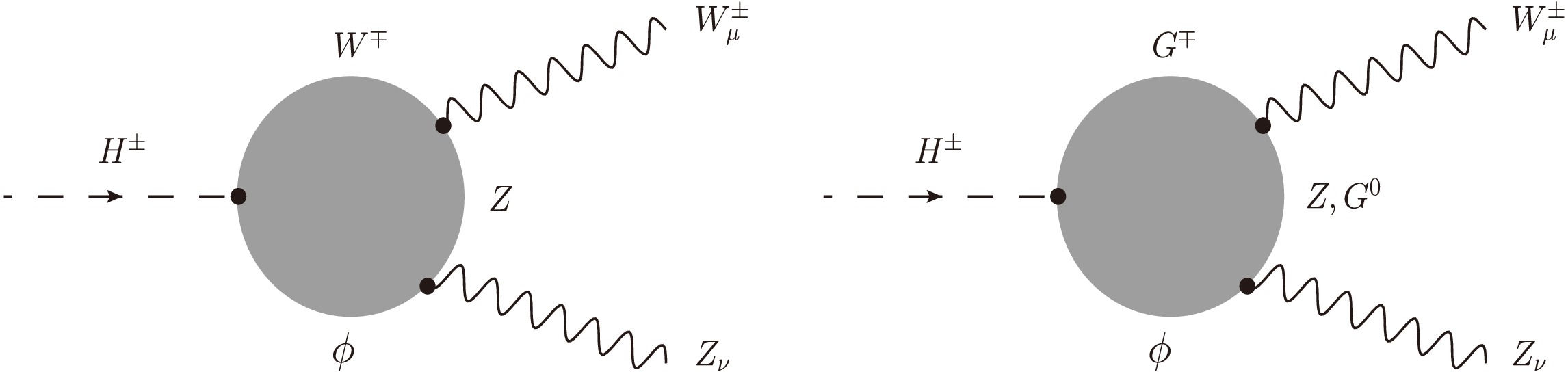 One-loop contributions for the decay process\begin{document}$ H^{\pm} \rightarrow W^{\pm}Z $\end{document} within the Two-Higgs-Doublet Model (THDM) are computed in the general \begin{document}$ {\cal{R}}_{\xi} $\end{document} gauge, and its phenomenological applications at future muon–TeV colliders are investigated. Analytic results are confirmed by several consistency tests, including those of ξ-independence, renormalization-scale stability, and the ultraviolet finiteness of the one-loop amplitude. We first perform an updated parameter scan of the Type-X THDM in phenomenological studies. The production of charged Higgs boson pairs at future muon–TeV colliders is then investigated through two processes: \begin{document}$ \mu^+\mu^- \rightarrow H^+H^- \rightarrow W^{\pm}W^{\mp}Zh $\end{document} and \begin{document}$ \mu^+\mu^- \rightarrow \gamma\gamma \rightarrow H^+H^- \rightarrow W^{\pm}W^{\mp}Zh $\end{document} . Both signal events and their significance are evaluated considering the corresponding Standard Model backgrounds. We find that the signal significances can exceed \begin{document}$ 5\sigma $\end{document} at several benchmark points in the viable parameter space of the Type-X THDM.