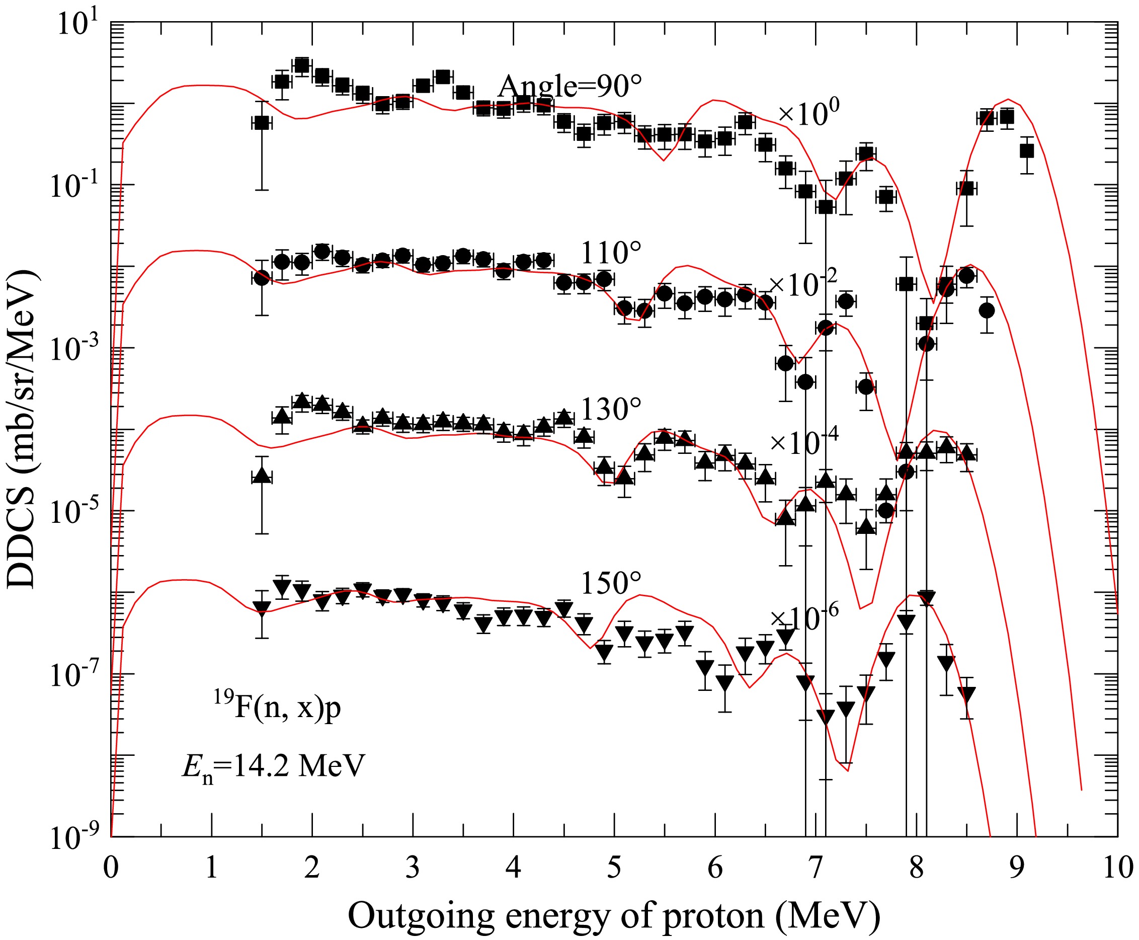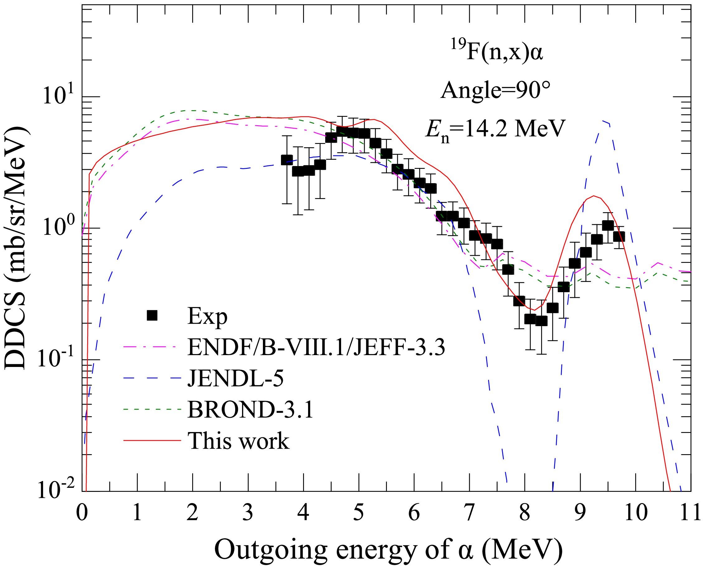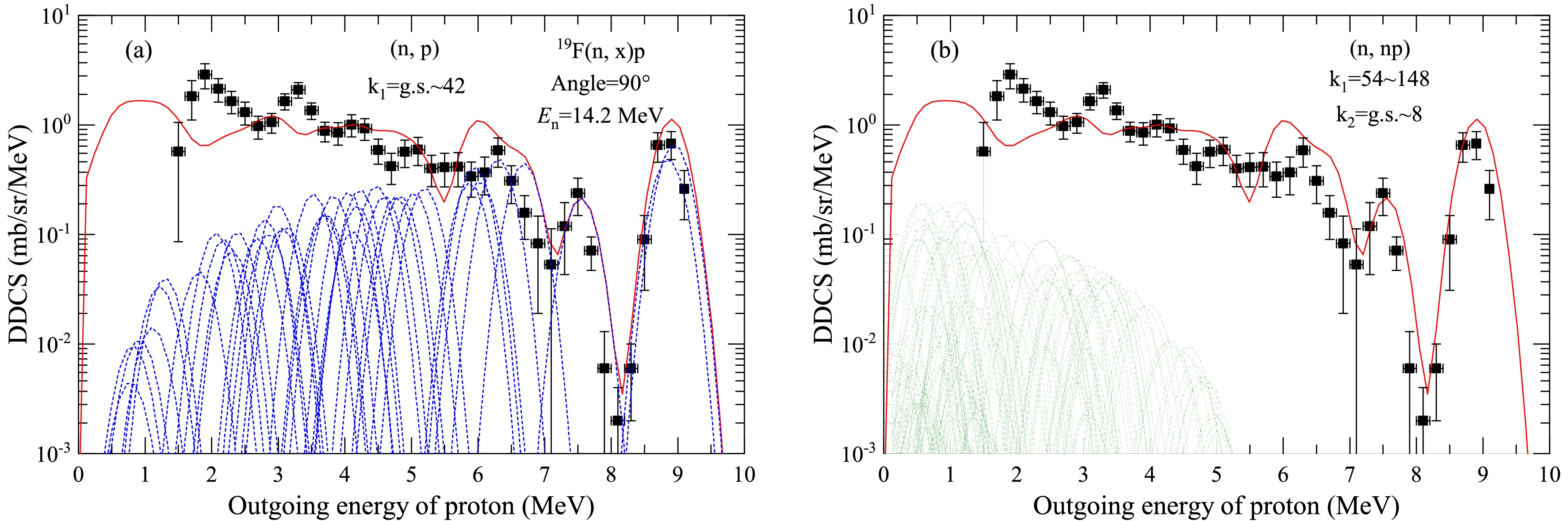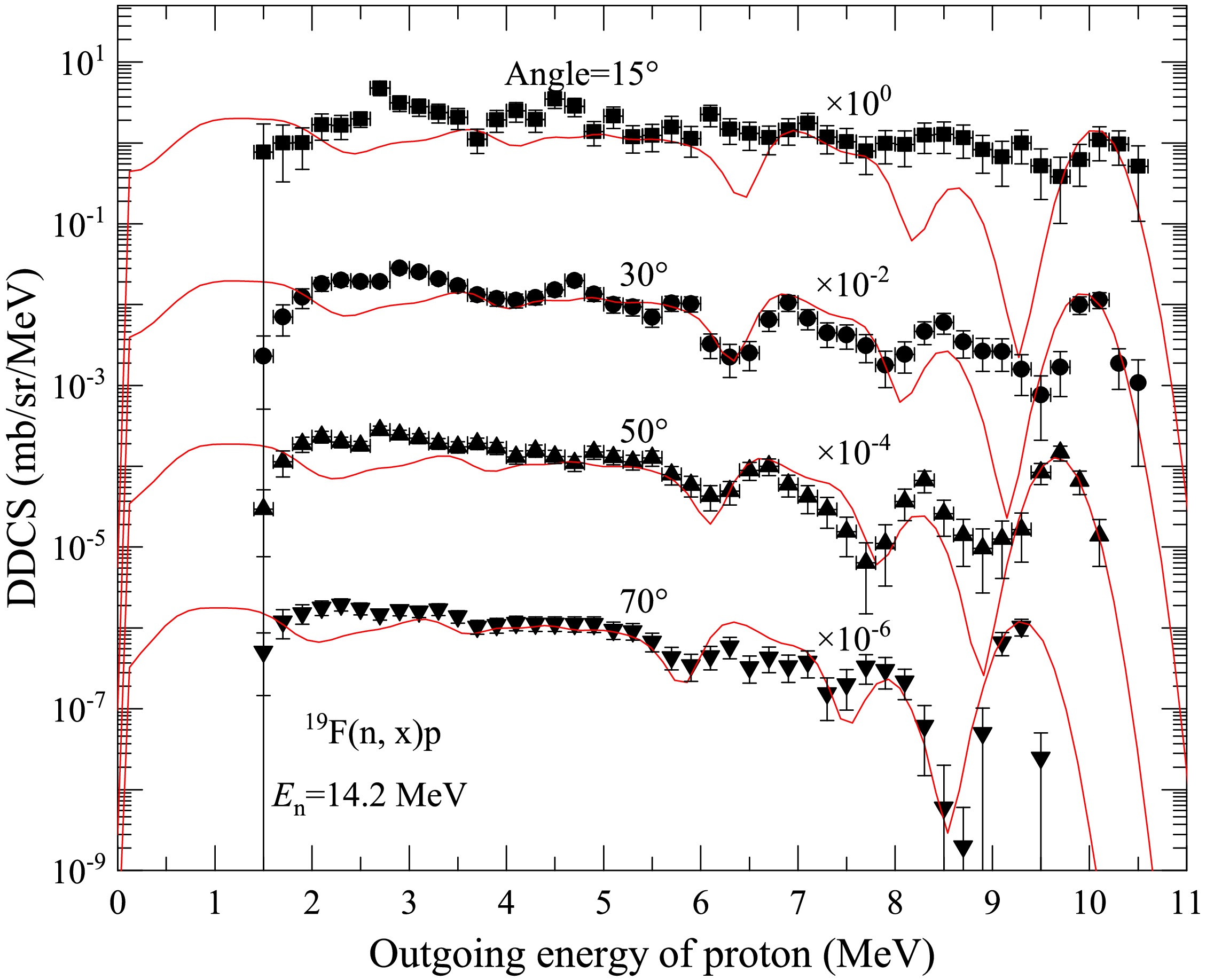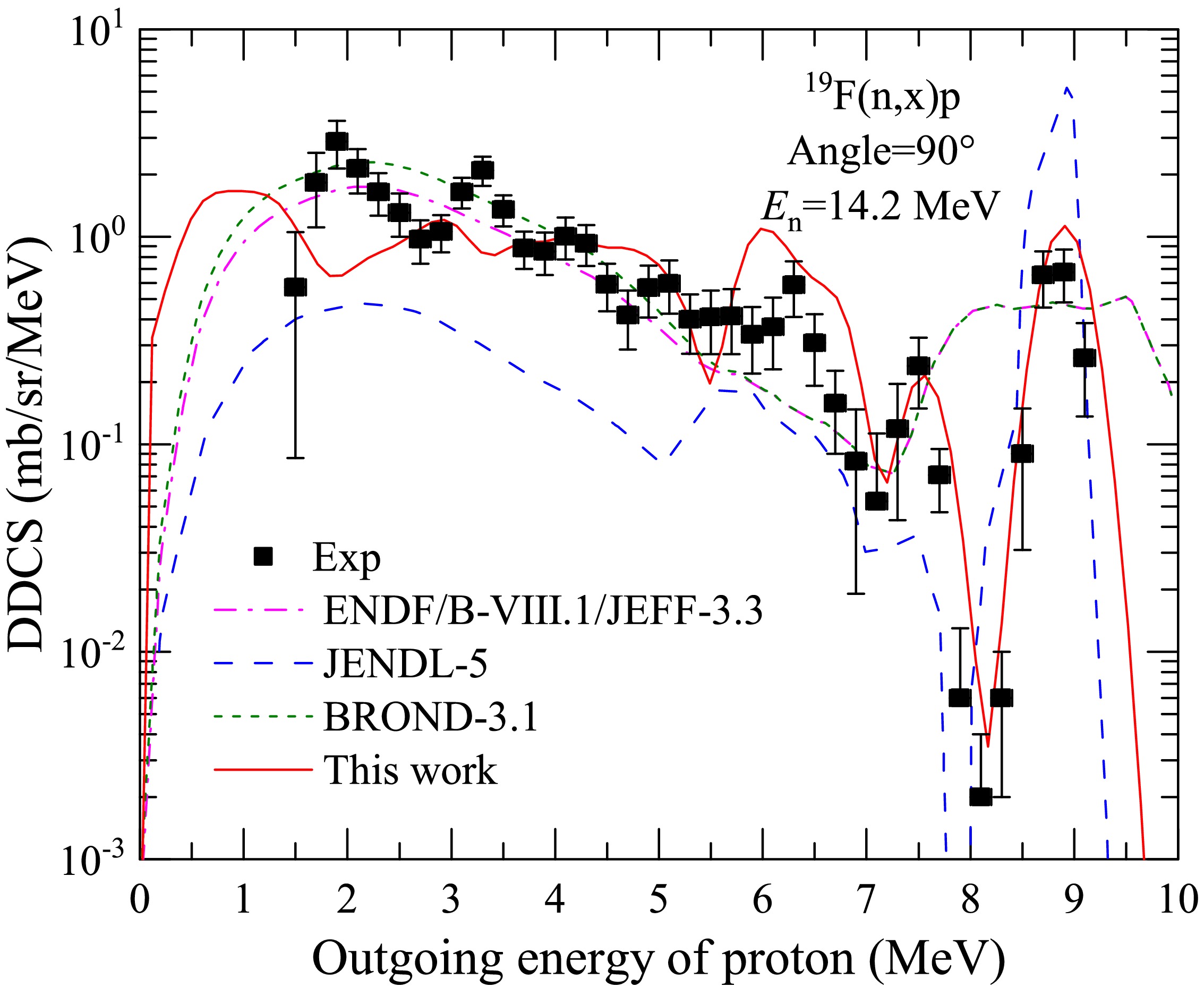 Effects of energy levels on the double-differential cross sections of outgoing charged particles for the n+19F reaction below 20 MeV