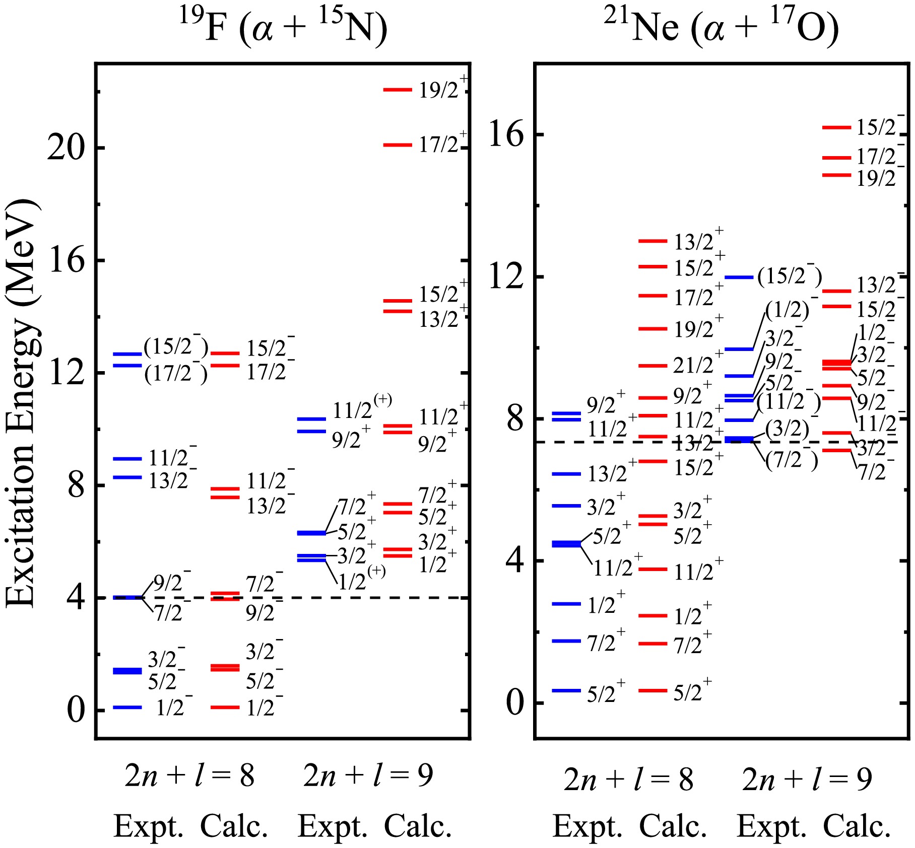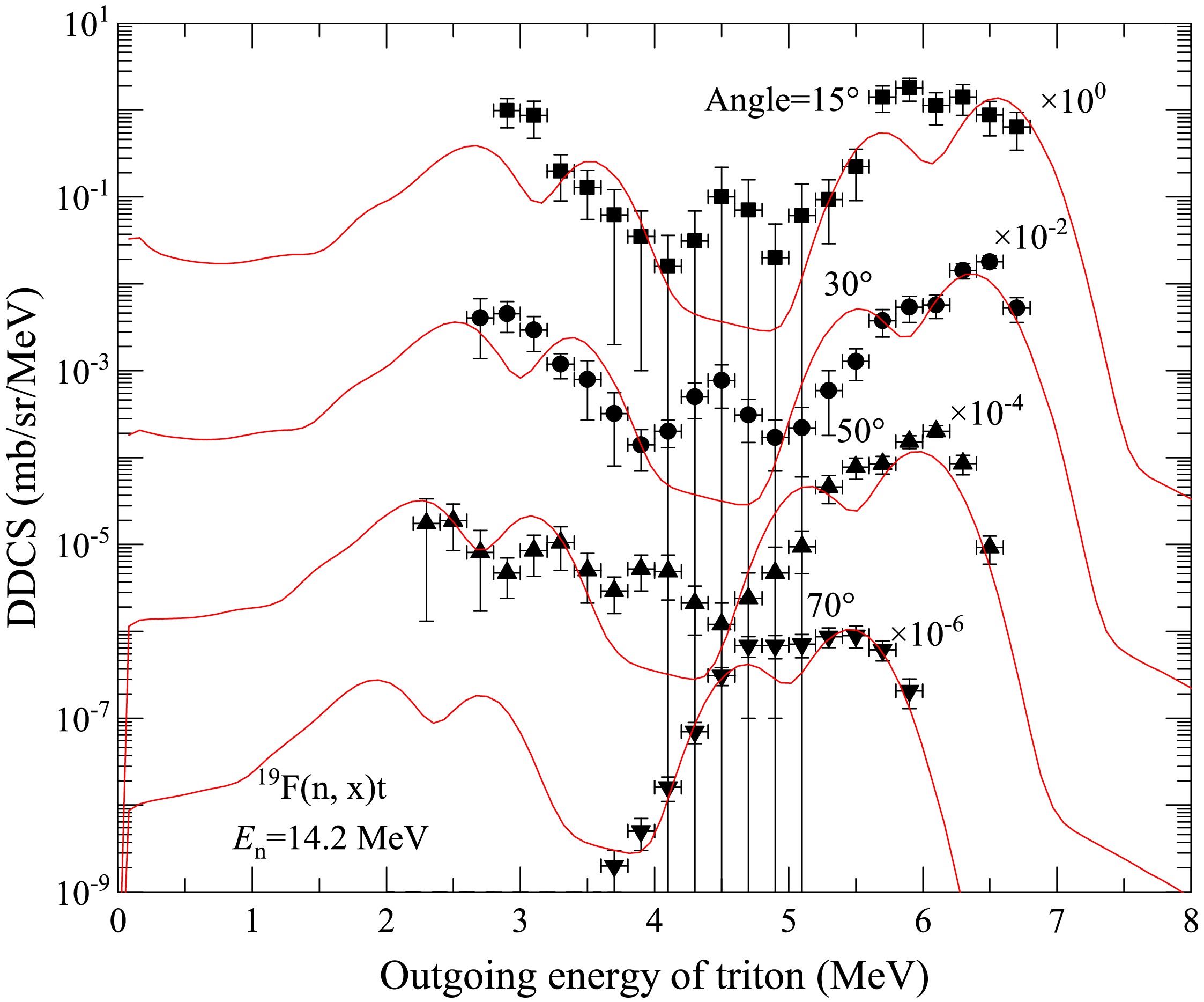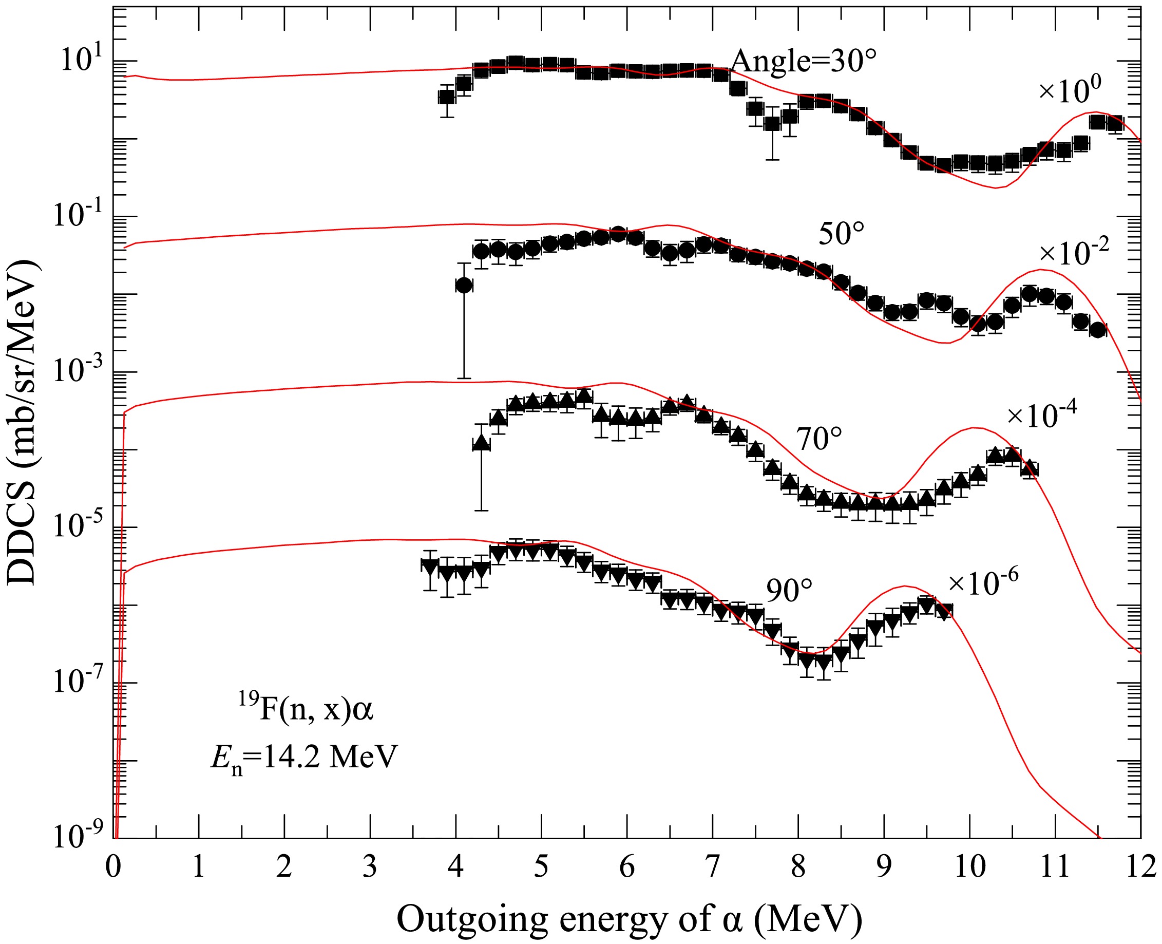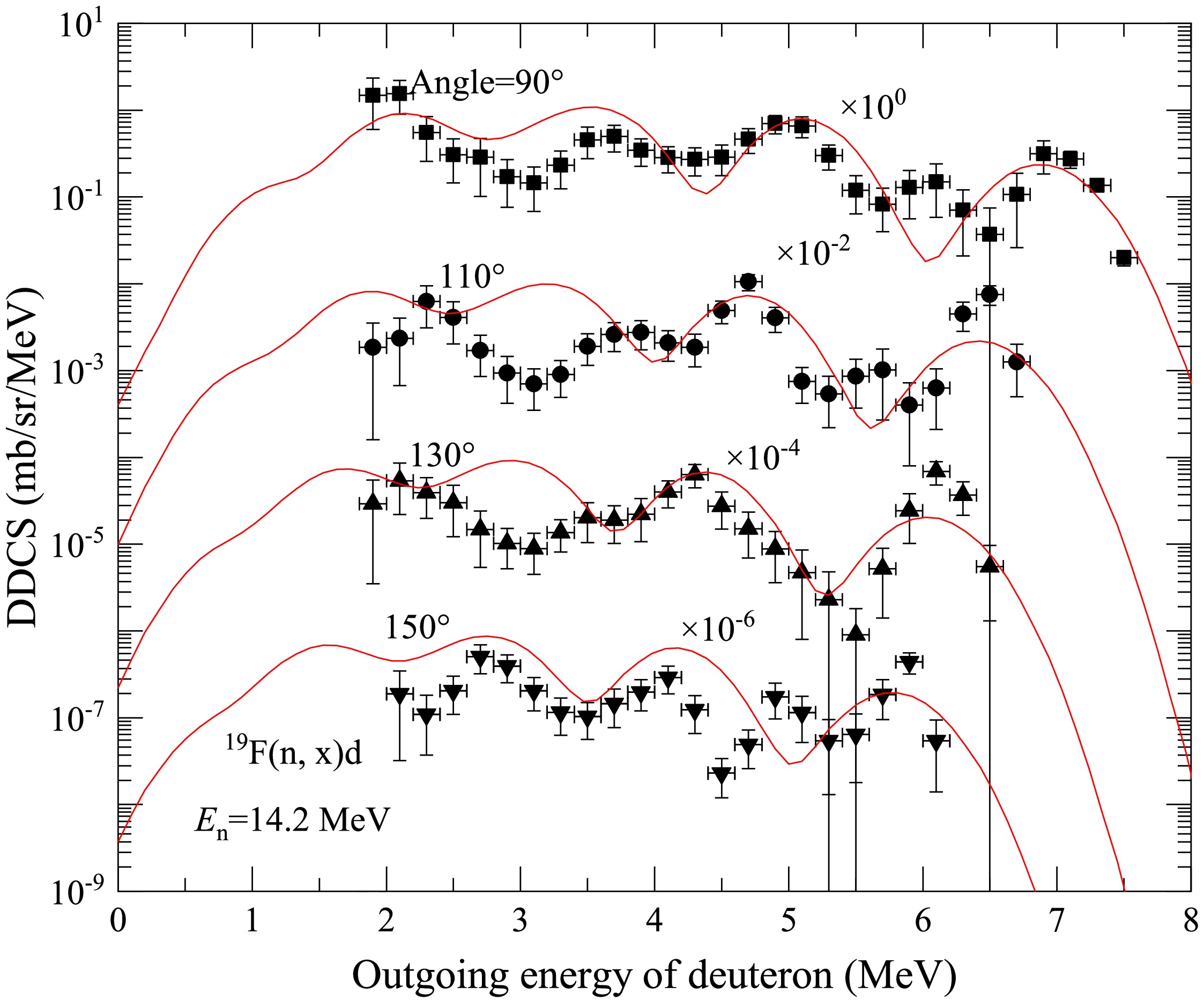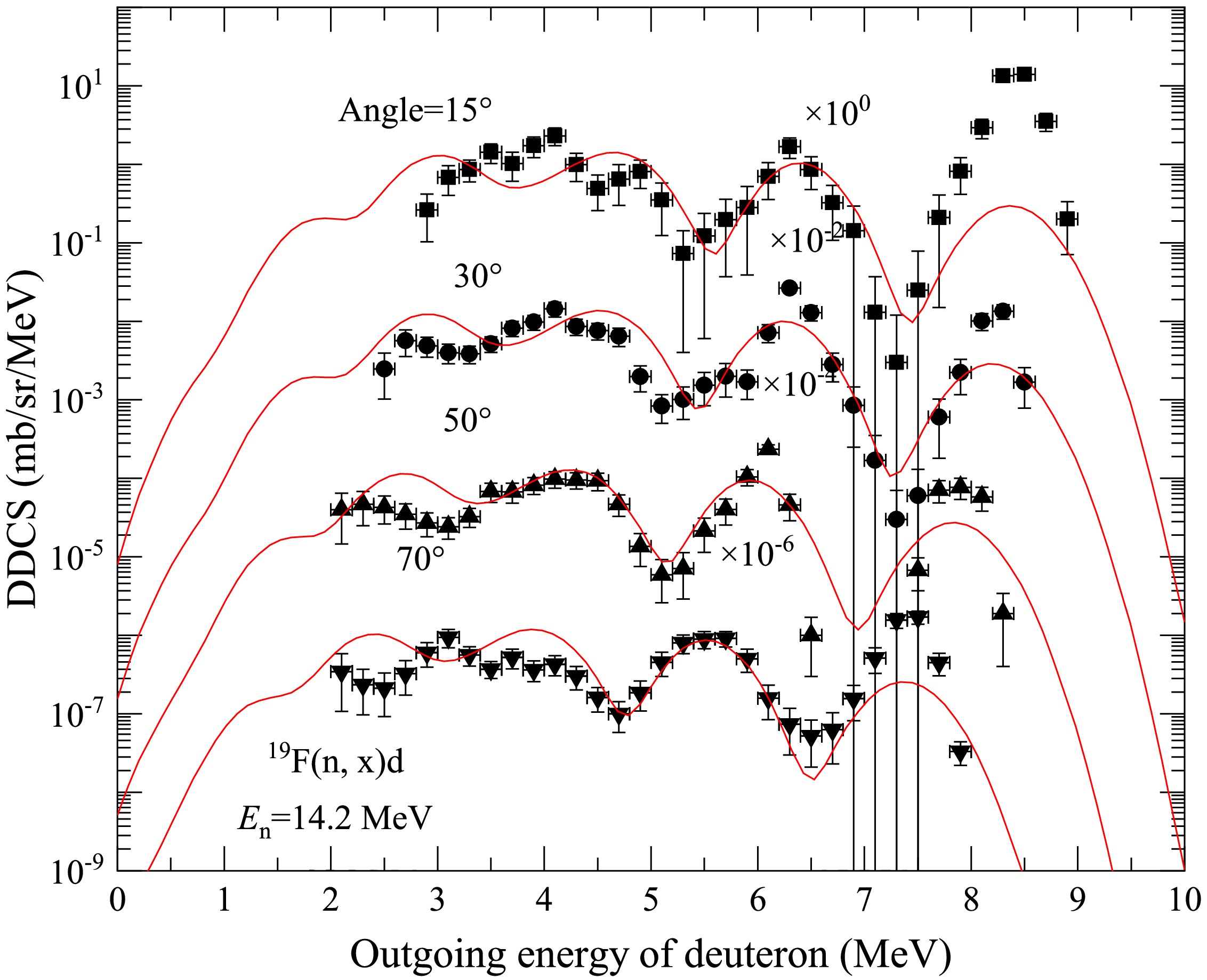 Effects of energy levels on the double-differential cross sections of outgoing charged particles for the n+19F reaction below 20 MeV