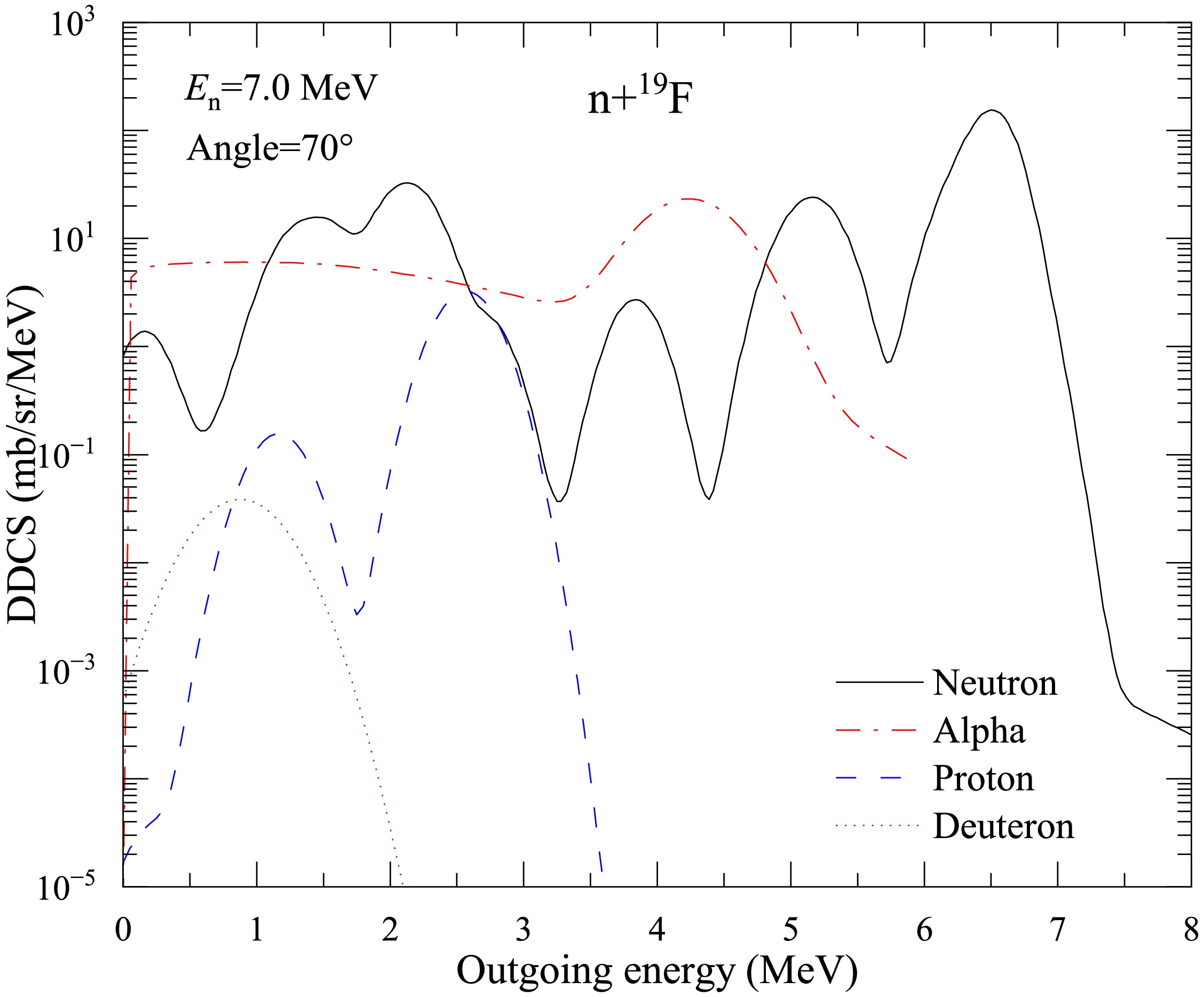 The double-differential cross sections (DDCSs) for the n+19F reaction are crucial for elucidating the mechanisms of nuclear reaction processes, advancing applications in nuclear engineering and technology, and supporting fundamental research in nuclear astrophysics. The quantitative description of the DDCS for emission products presents a persistent theoretical challenge, primarily due to the effects of energy levels being more intricate than those of 1p-shell nuclei. The pick-up mechanism of complex particles, as one of the important components of the statistical theory for light nuclear reactions (STLN), is improved to describe the DDCSs of outgoing charged particles, considering the effect of energy levels with energy, angular momentum, and parity conservations. A comprehensive analysis of all open reaction channels is performed for the n+19F reaction below 20 MeV. After ensuring the acquisition of the high-quality DDCS of the emitted neutrons, the DDCSs of outgoing charged particles (including \begin{document}$ p, d, t, \alpha $\end{document}) are self-consistently obtained. The results of this study are not only in good agreement with recently measured experimental data at \begin{document}$ E_n $\end{document}=14.2 MeV but also superior to the data recommended by current major nuclear databases. Thus, the LUNF code for the n+19F reaction is developed to obtain an ENDF-6 formatted DDCS file of the nucleon and light composite charged particles.