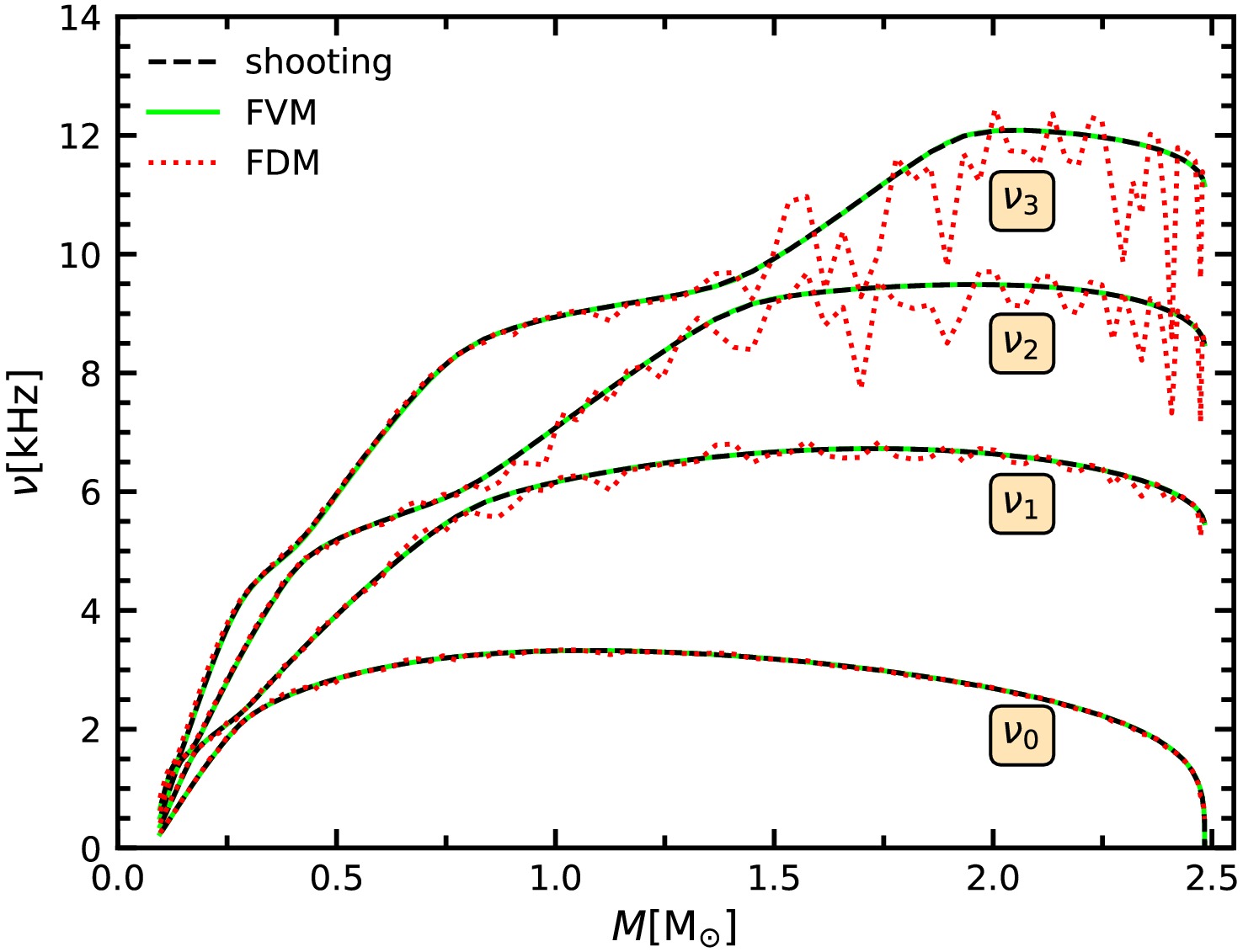 The radial oscillations of neutron stars are studied using equations of state derived from density-dependent relativistic mean-field (DDRMF) models, which effectively describe the ground-state properties of finite nuclei. A novel numerical approach, the finite volume method (FVM), is employed to solve the eigenvalue problem associated with oscillation frequencies. Compared with conventional methods such as the finite difference method and shooting method, the FVM avoids the numerical instability encountered at high frequencies with an equation of state that includes a discontinuous adiabatic index and offers greater computational efficiency. The oscillation frequencies of high-order modes exhibit a similar trend of change. The radial displacements and pressure perturbations are largely influenced by the equations of state of the crust region. The frequency of the first excited state exhibits a strong linear relationship with both the slope and skewness parameters of the symmetry energy. These findings suggest that the density dependence of the symmetry energy can be constrained through observations of neutron star radial oscillation frequencies.