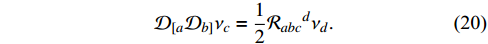 $ {\cal{D}}_a $ . The curvature tensor,$ {\cal{R}}_{abc}{}^d $ , can be defined for$ {\cal{D}}_a $ as follows. Let$ \nu_a $ be a covector field on$ {\cal{I}} $ ; then, one obtains$ {\cal{D}}_{[a}{\cal{D}}_{b]}\nu_c = \frac{1}{2}{\cal{R}}_{abc}{}^d\nu_d. $