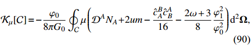 $ \oint_{{\cal{C}}}\mu{\cal{D}}^2{\cal{D}}^2({\cal{D}}^2+2)\Delta{\cal{K}} {\rm{d}}^2{\bf{\Omega}} = \frac{64\pi G_0}{\varphi_0}({\cal{J}}_\mu-\Delta{\cal{K}}'_\mu), $