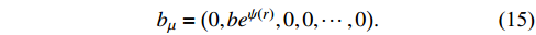 $ \begin{array}{*{20}{l}} b_\mu=\big(0,be^{\psi(r)},0,0,\cdots,0\big). \end{array} $