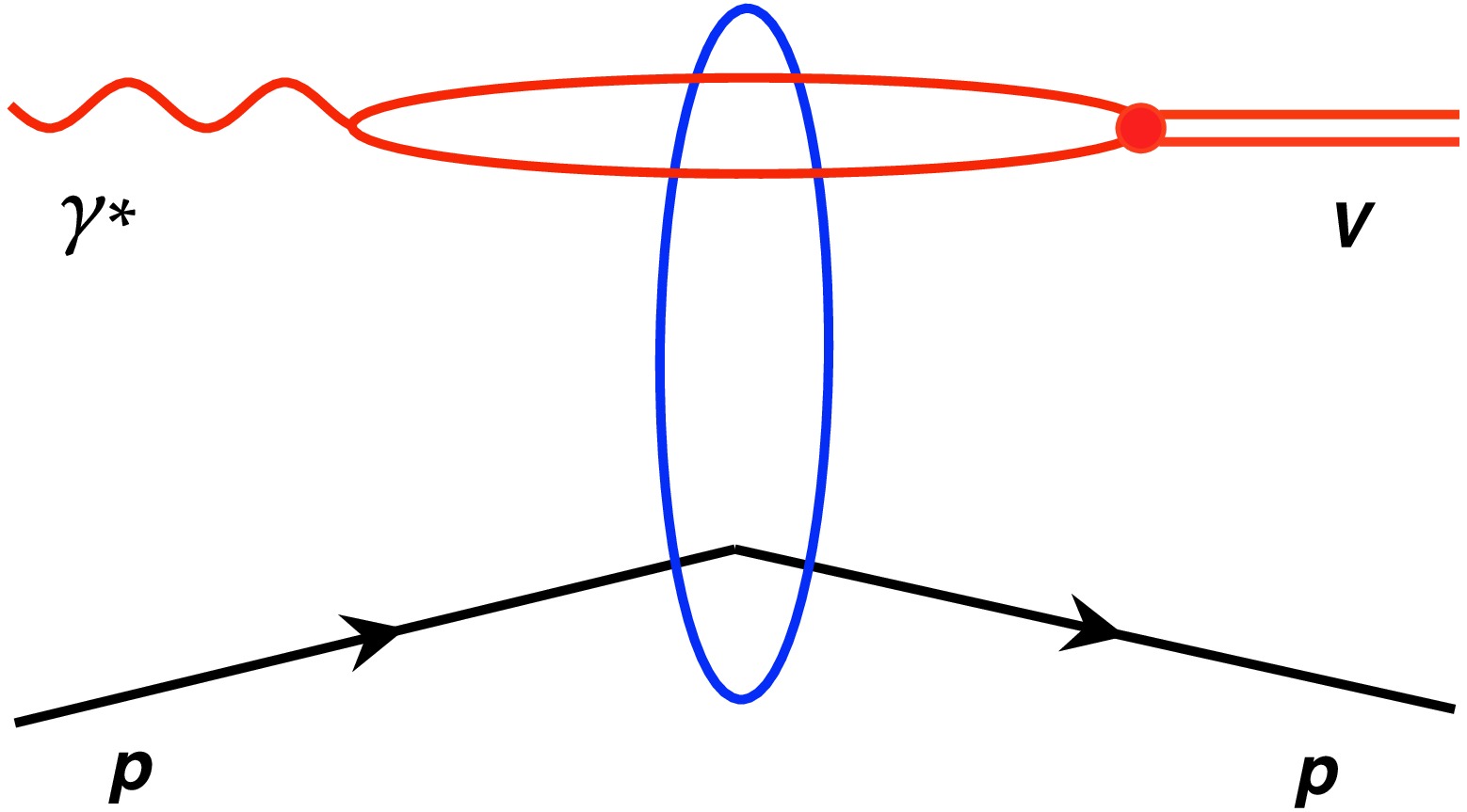 Figure 1.  (color online) The vector meson production process in a virtual photon-proton DIS is described in the dipole representation.