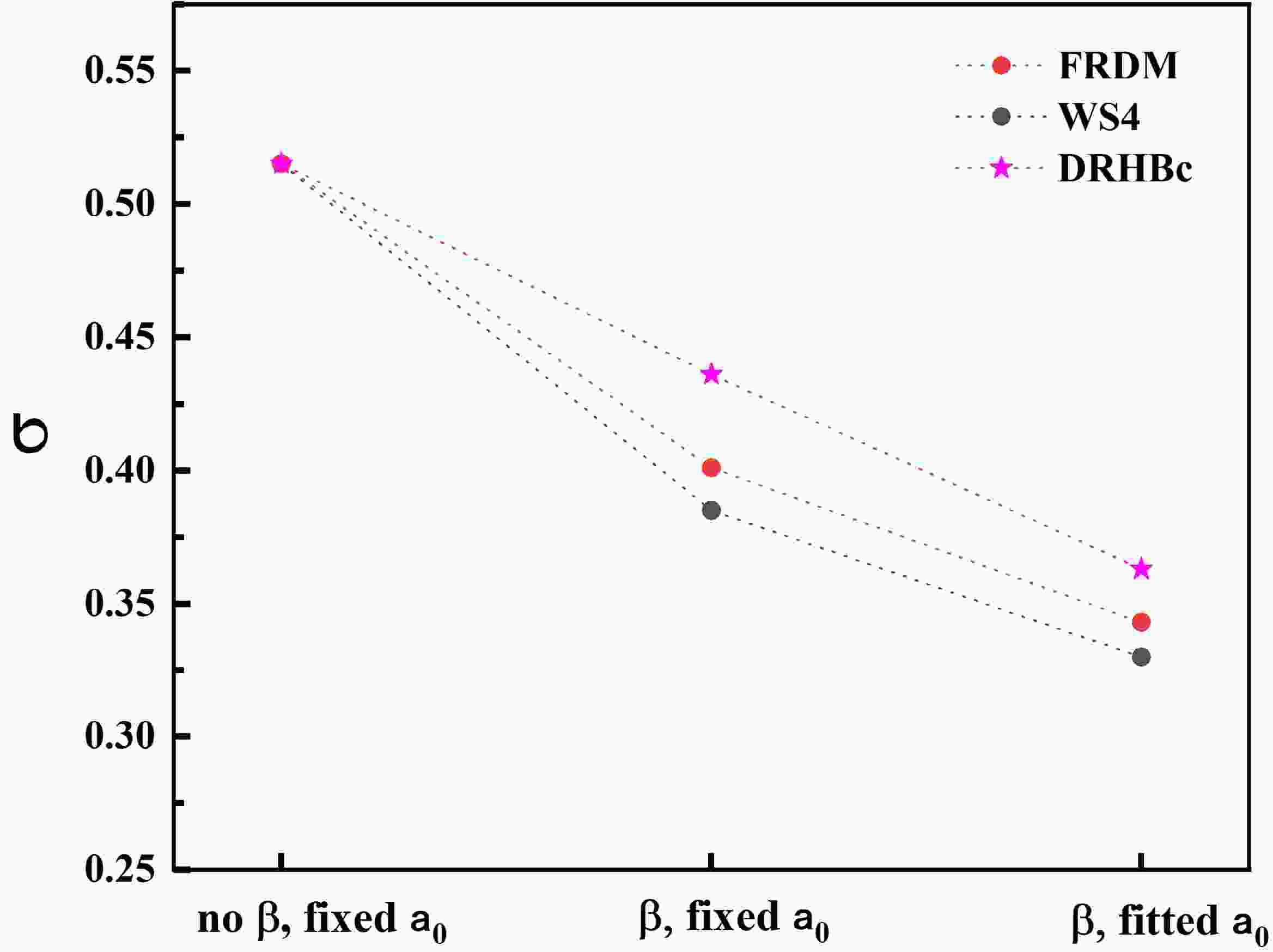 Figure 1. (color online) Root mean square deviations between the experimental data and calculated results by using the deformed TPA with nuclear deformations obtained from FRDM, WS4, and DRHBc models, respectively.