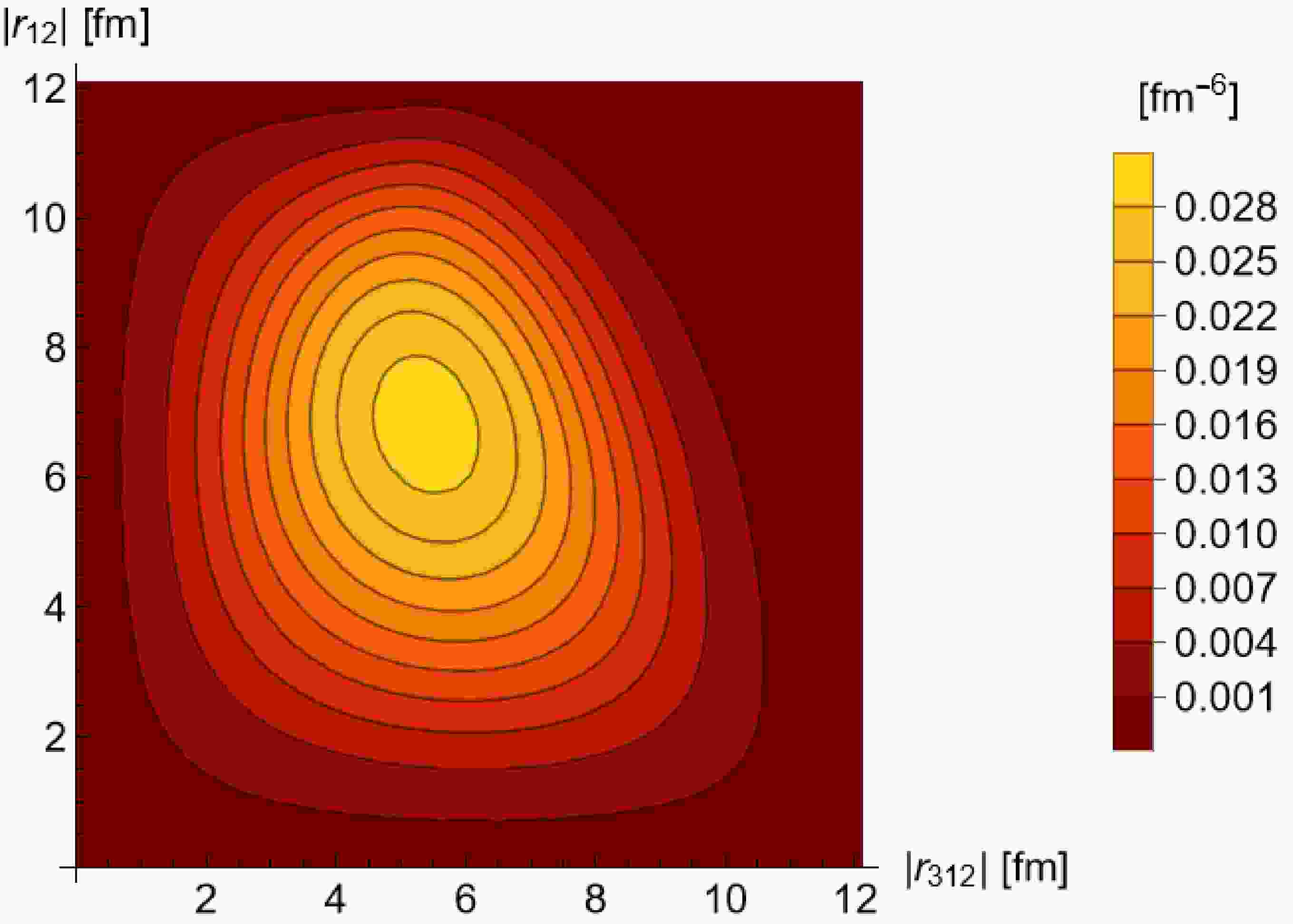 $ {\boldsymbol{r}}_{12} $ and$ {\boldsymbol{r}}_{312} $ coordinates,$ D(r_{12},r_{312}) = \left(4\pi\right)^2 r_{12}^2 r_{312}^2 \int {\rm{d}} r^3_{{\rm{cm}}} $ $ D(r_{{\rm{cm}}},r_{12},r_{312}) $ . -