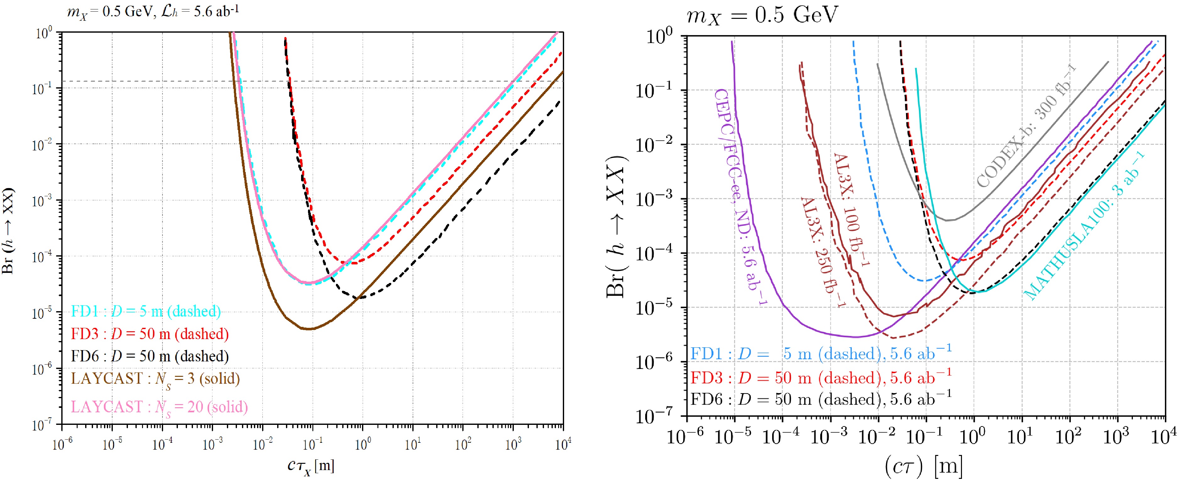 Besides the aforementioned detectors, several far detectors are proposed to search for LLP. Compared to the main detector near the collision point, far detectors can significantly enhance the ability to detect LLP, particularly when the decay length of the LLP reaches on the order of hundreds of meters. Examples of such detector proposals, including FADEPC and LAYCAST, are discussed in detail in Section VII. Far detectors are expected to work synergistically with the main detector, greatly extending the CEPC's capability for exploring new physics.