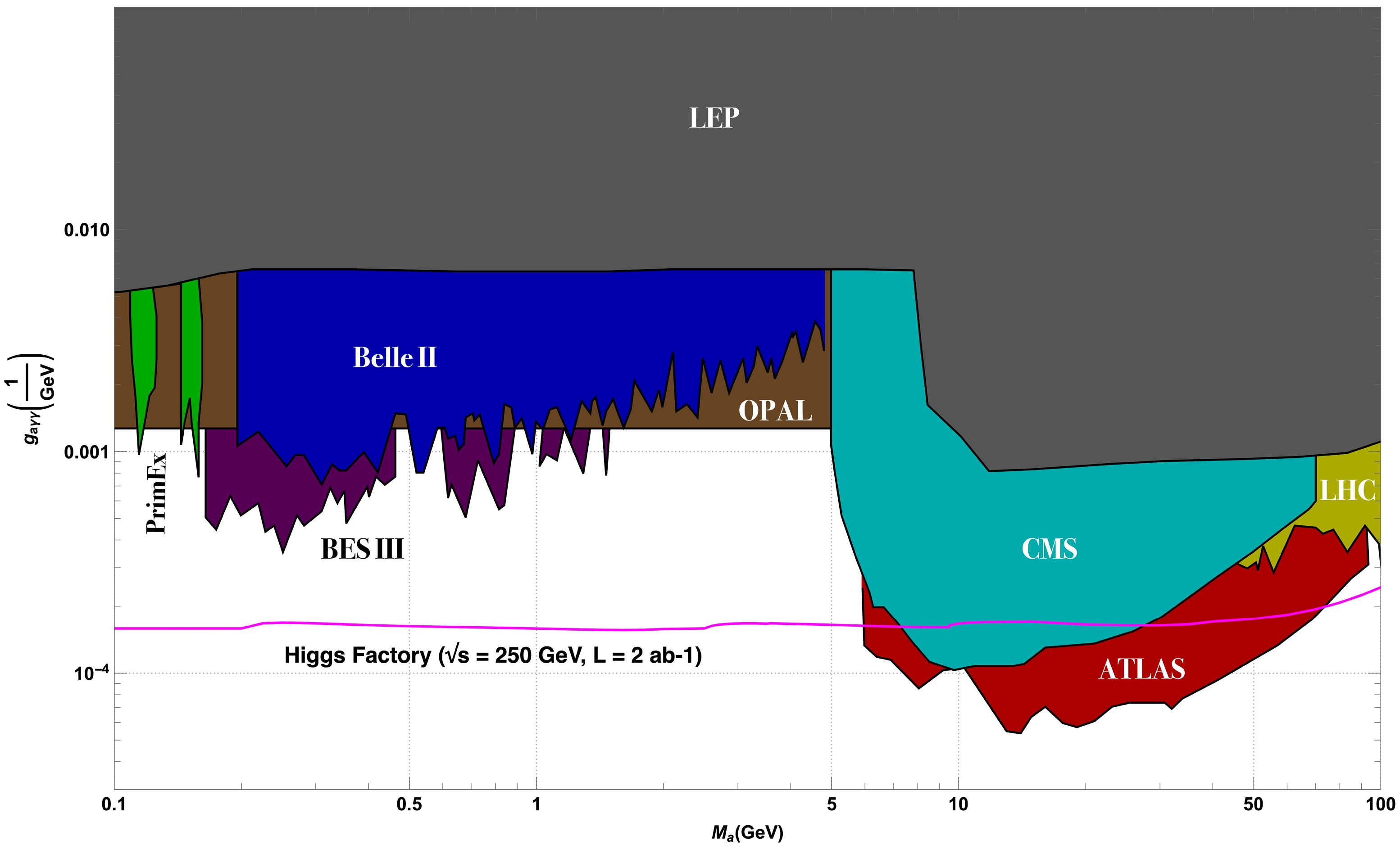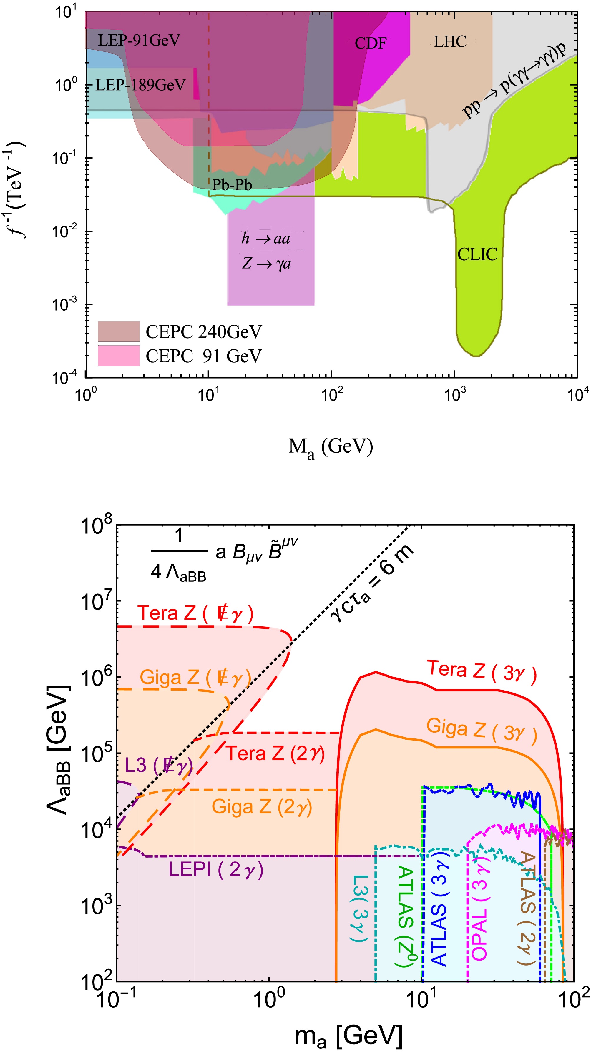 Quantity Channel Sensitivity scale (GeV) CEPC Run ALP $ g_{a\gamma\gamma}^{-1} $