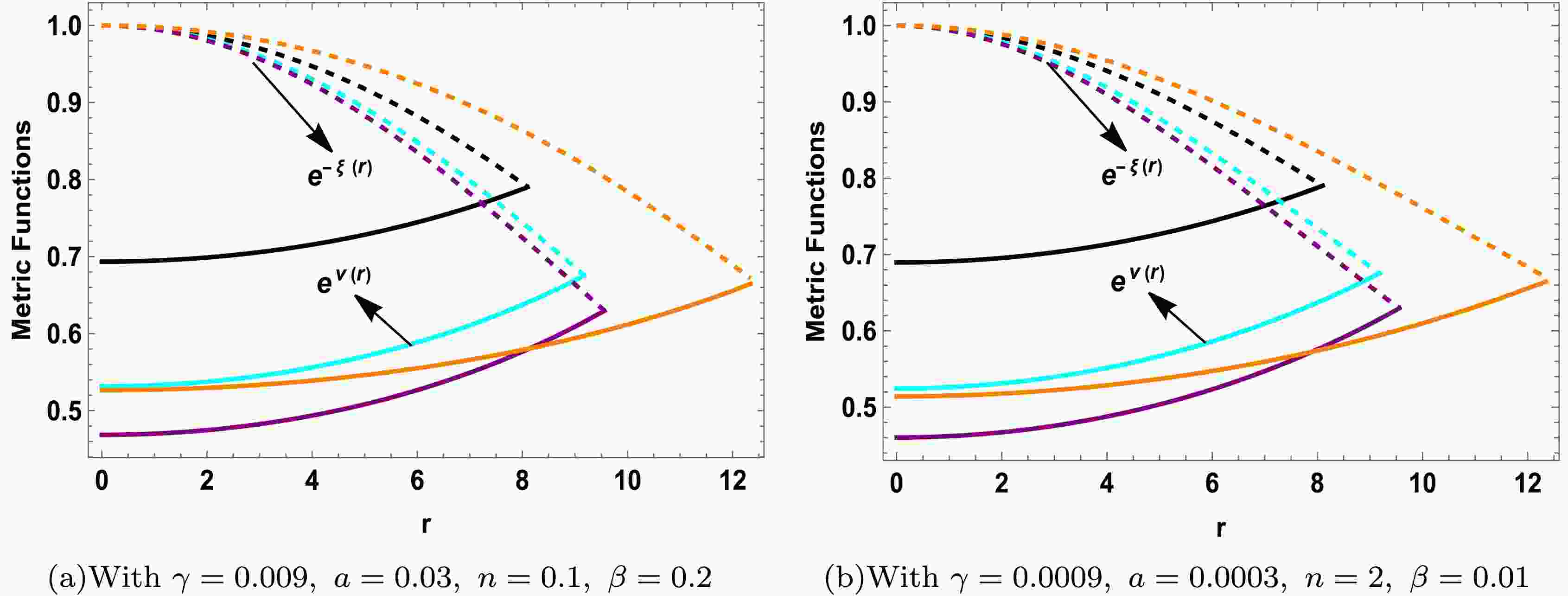 $ \begin{aligned} {\rm d}s^2=-{\rm e}^{v(r)} {\rm d}t^2+{\rm e}^{\xi(r)}{\rm d}r^2+r^2\Big({\rm d}\theta^2+\sin^2{\theta}{\rm d}\phi^2\Big). \end{aligned} $