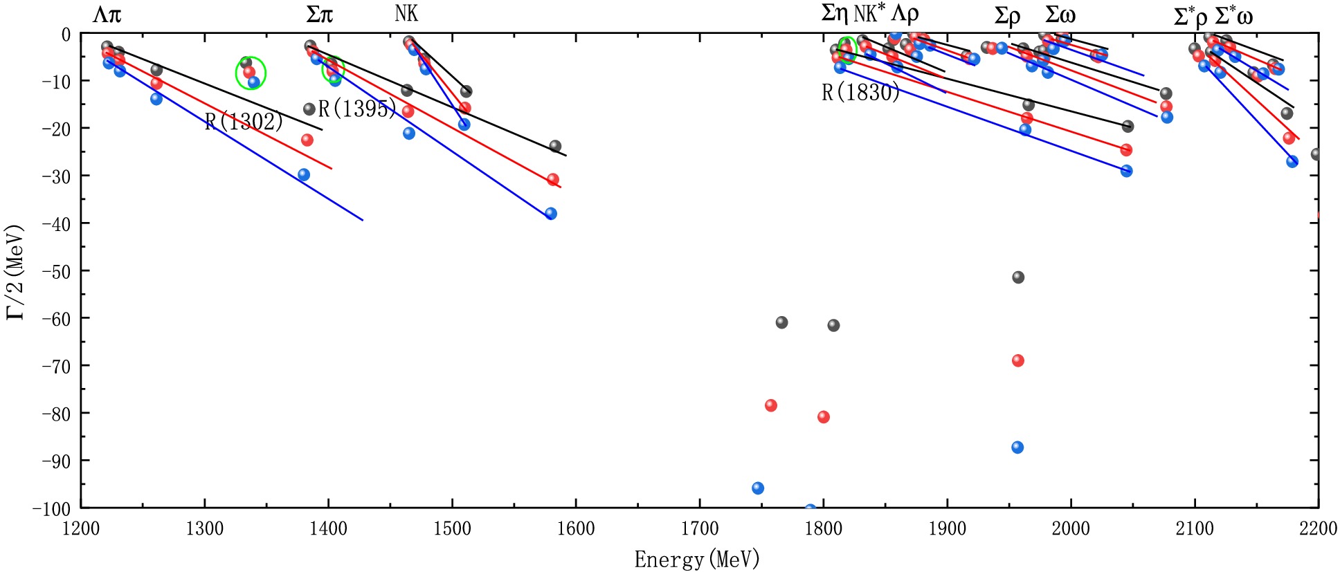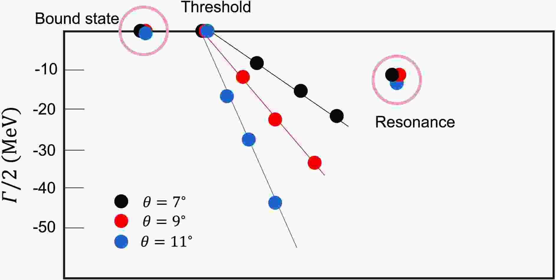 Figure 5. (color online) Calculated decay widths of resonance states in the