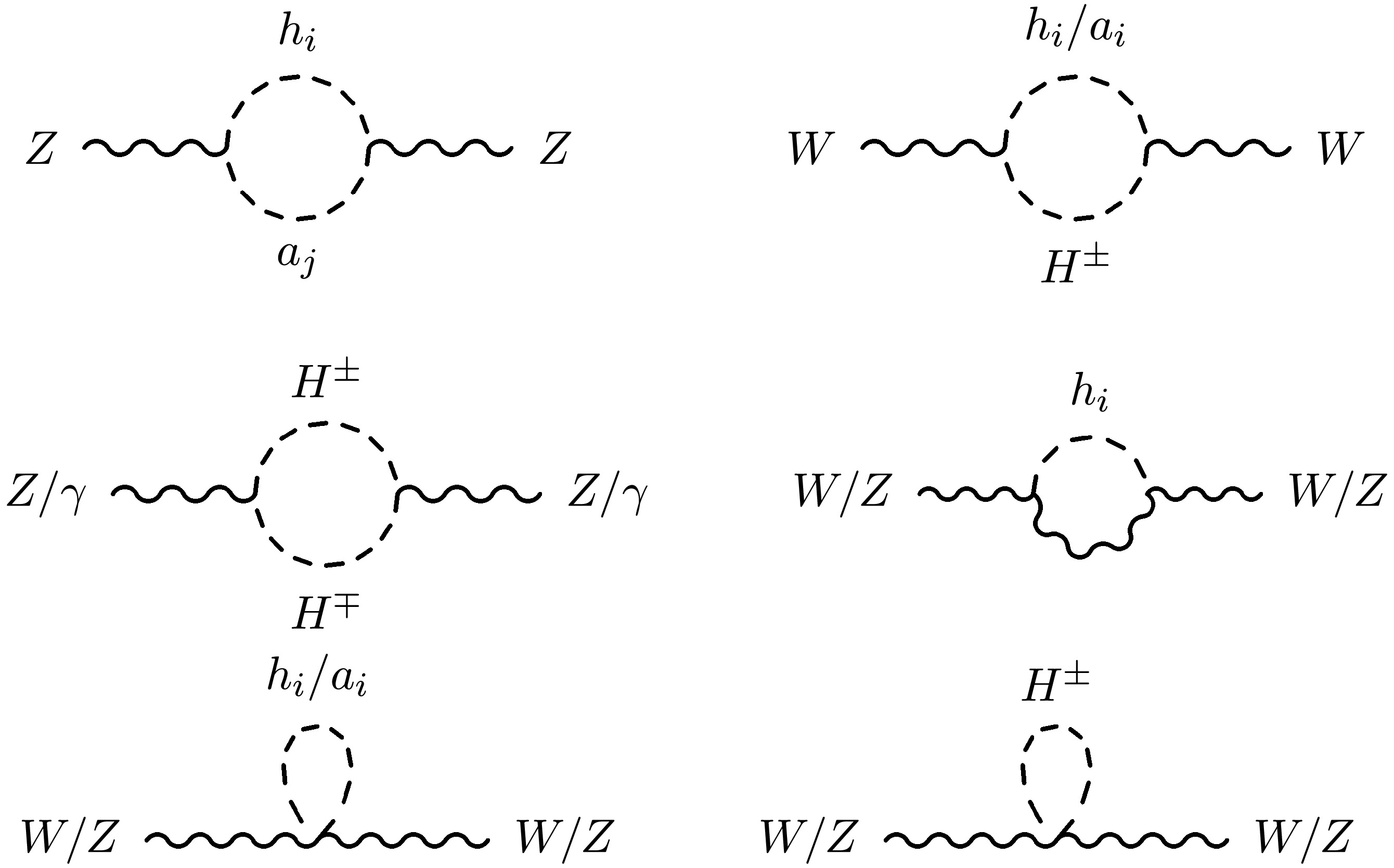 As the oblique parameters STU are constructed with the W and Z self-energies [21], as shown in Eqs. (A2)− (A3), they receive contributions from the Feynman diagrams in Fig. 1. The three-point vertices (including