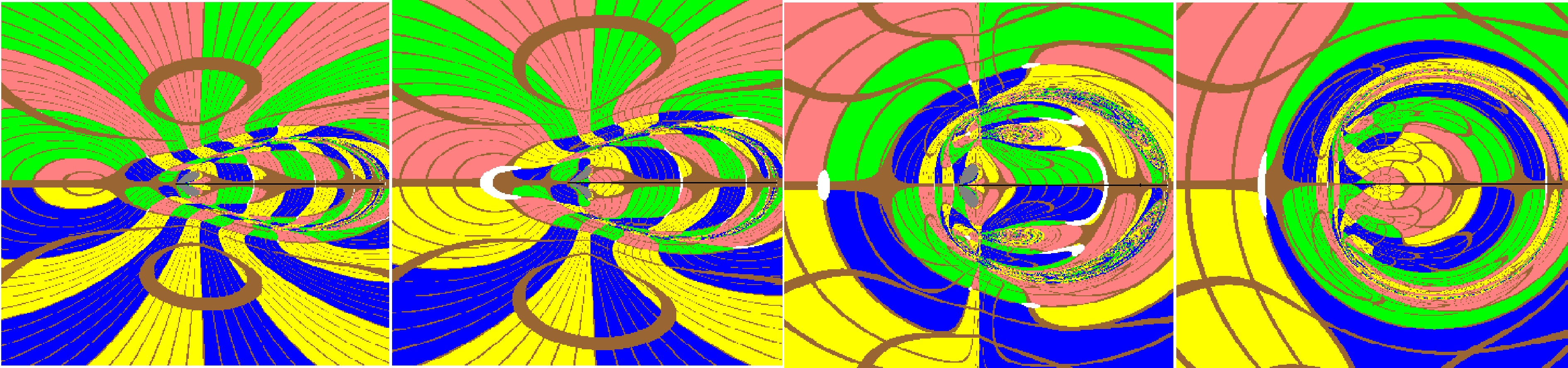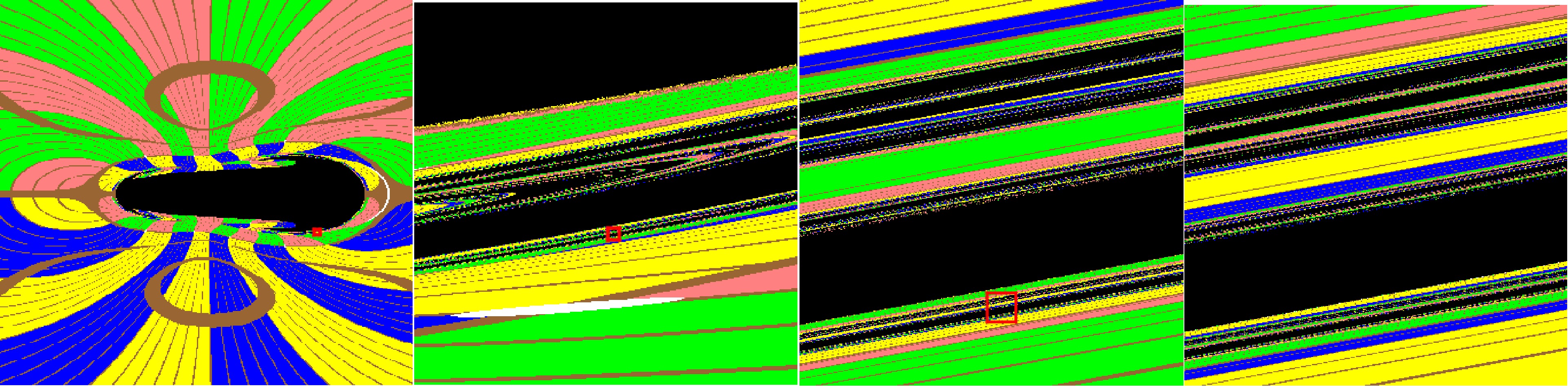 Figure 8.  (color online) The two-headed jellyfish-shaped shadow and the self-similar fractal structures in the shadow of the Brans-Dicke-Kerr spacetime with fixed $ a=0.5 $ and $ \omega=0.4 $. Here we set the mass parameter $ M=1 $, $ r_{\rm obs}=8M $ and $ \theta_{\rm obs}=\pi/2 $.