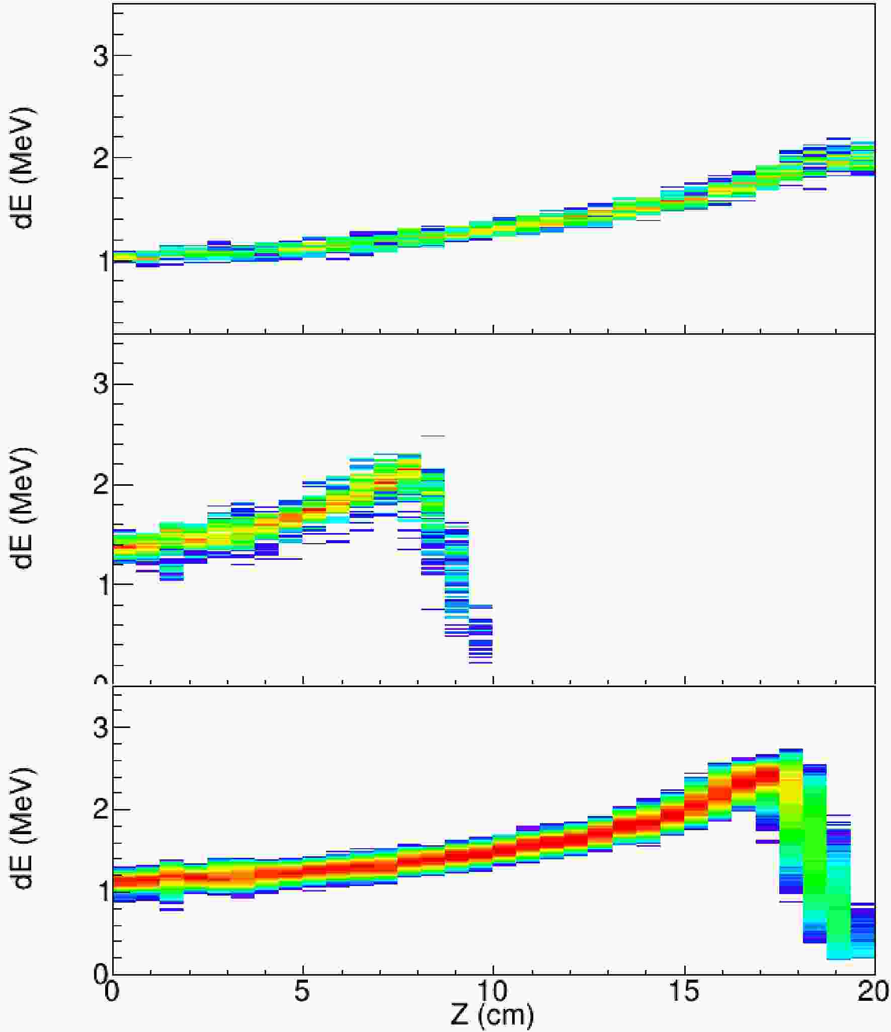 $^{19}{\rm{O}}$ ions was used as a reference template. For each candidate fusion event, its measured energy-loss curve was shifted along the Z-axis until its trailing edge aligned with the template endpoint. The$\chi^{2}$ value between the measured and template energy-loss distributions was then calculated for all pads beyond the reaction point (react_column). By varying the pad-shift amount, the minimum$\chi^{2}$ was obtained, providing an optimized alignment. For determining the Bragg peak region of the shifted energy-loss curve, pads 23–27 defined in the energy loss template were prioritized for scattering angles below$10^{\circ}$ , and pads 25–27 for angles between$10^{\circ}$ and$20^{\circ}$ . If fewer than three valid pads were available in these ranges, subsequent pads beyond 27 were included. The average Bragg energy loss was calculated as$ \left(\frac{dE}{dx}\right)_{\mathrm{Bragg}} = \frac{E_{\mathrm{loss,\,sum}}}{N_{\mathrm{pad}} \times \text{Pad Width (0.63 mm)}}. $