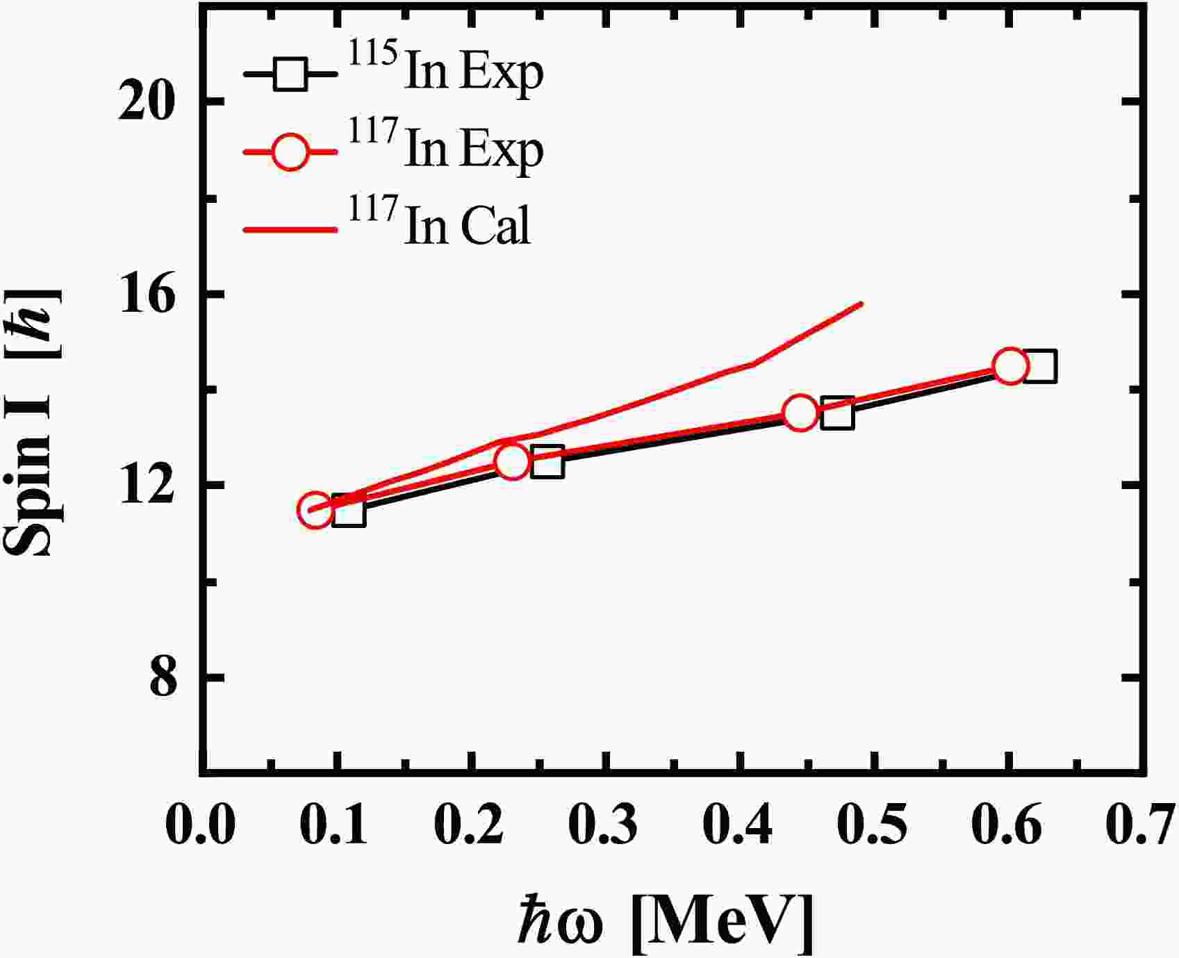 $ ^{57} {\rm{Mn}}$ [16],$ ^{75} {\rm{As}}$ [17],$ ^{79} {\rm{Se}}$ [18],$ ^{109} {\rm{Ag}}$ [19],$ ^{115} {\rm{In}}$ [15], and$ ^{144} {\rm{Tb}}$ [20]. These nuclei are scattered across the chart of nuclides. Thus, a systematic study of the "stapler" mechanism has not been performed yet. Studying the evolution of the angular momentum components with the number of nucleons will deepen our understanding of the "stapler" mechanism and provide insight into the interplay between the shears mechanism and collective motion. In isotopes, with proton numbers close to the$ 50 $ shell closure, exhibit rich single-particle and collective structures [21−28]. Therefore, they are good candidates for systematically studying the evolution of the "stapler" mechanism with neutron number. In this study, the high-spin states in$ ^{117} {\rm{In}}$ are comprehensively analyzed. The systematic variation of the "stapler" mechanisms in In isotopes is analyzed for the first time. The present study reveals the diversity of excitation modes in$ ^{117} {\rm{In}}$ . -
