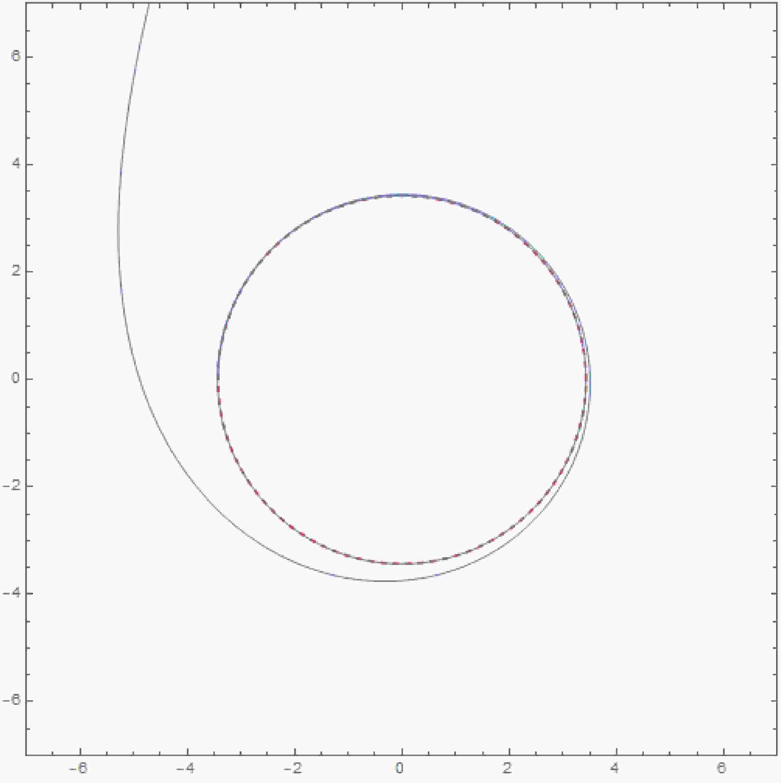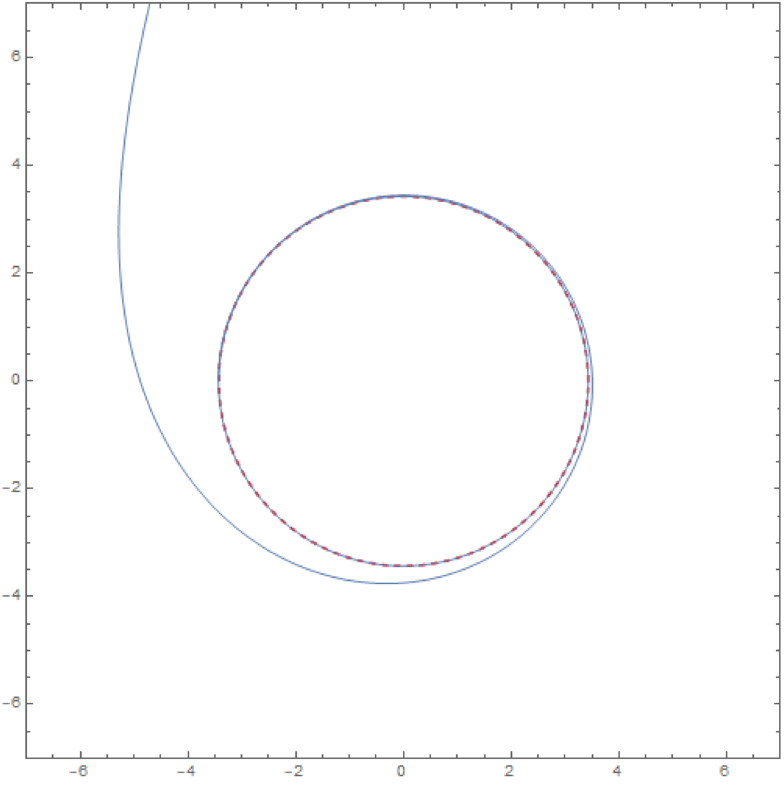 Figure 3. Critical orbits for timelike geodesics in the Schwarzschild metric. The parameters are chosen as