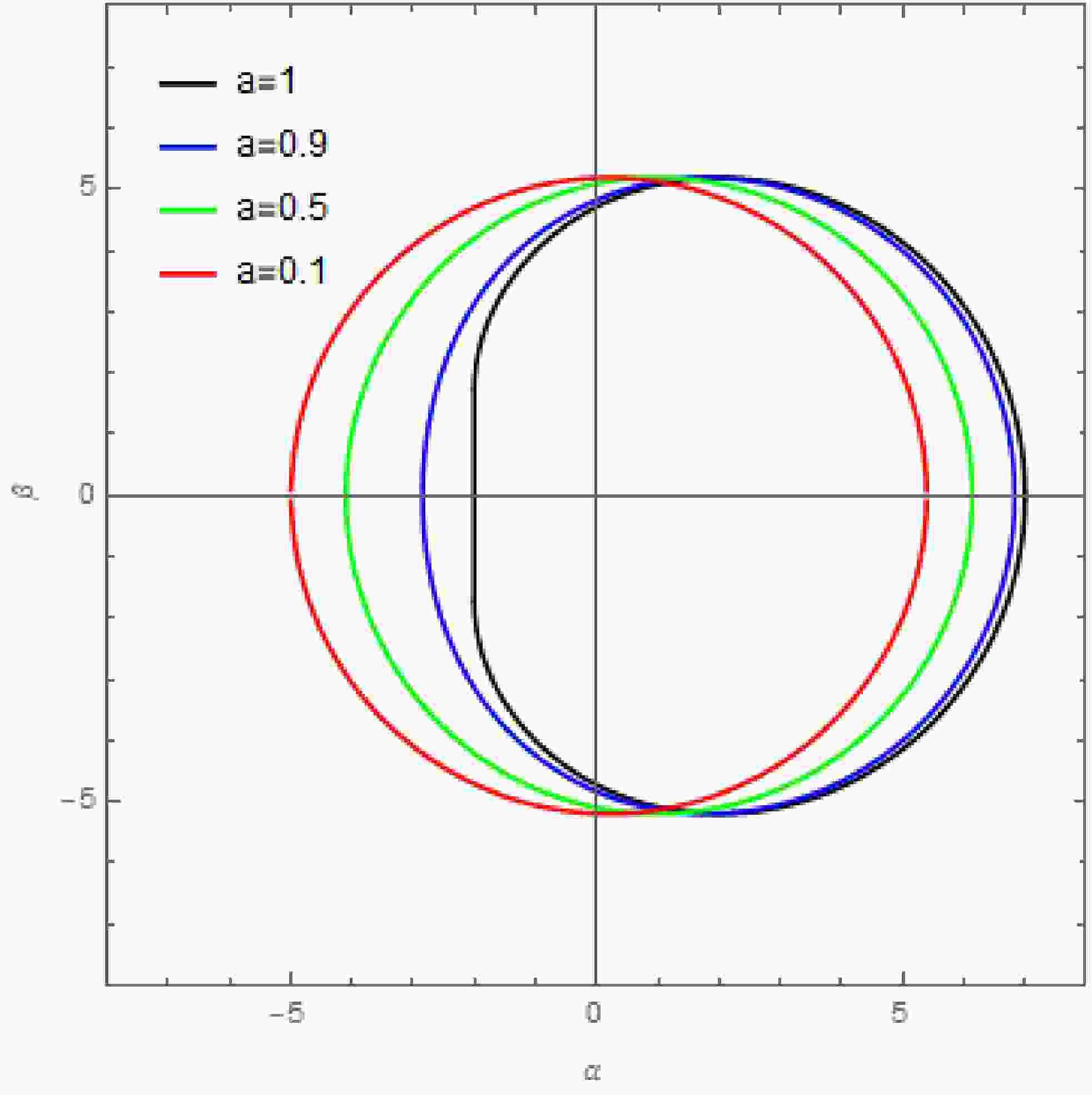 Figure 9. The shadow of a Kerr-Newman black hole as seen by a distant observer in the equatorial plane. The mass of the black hole is set to