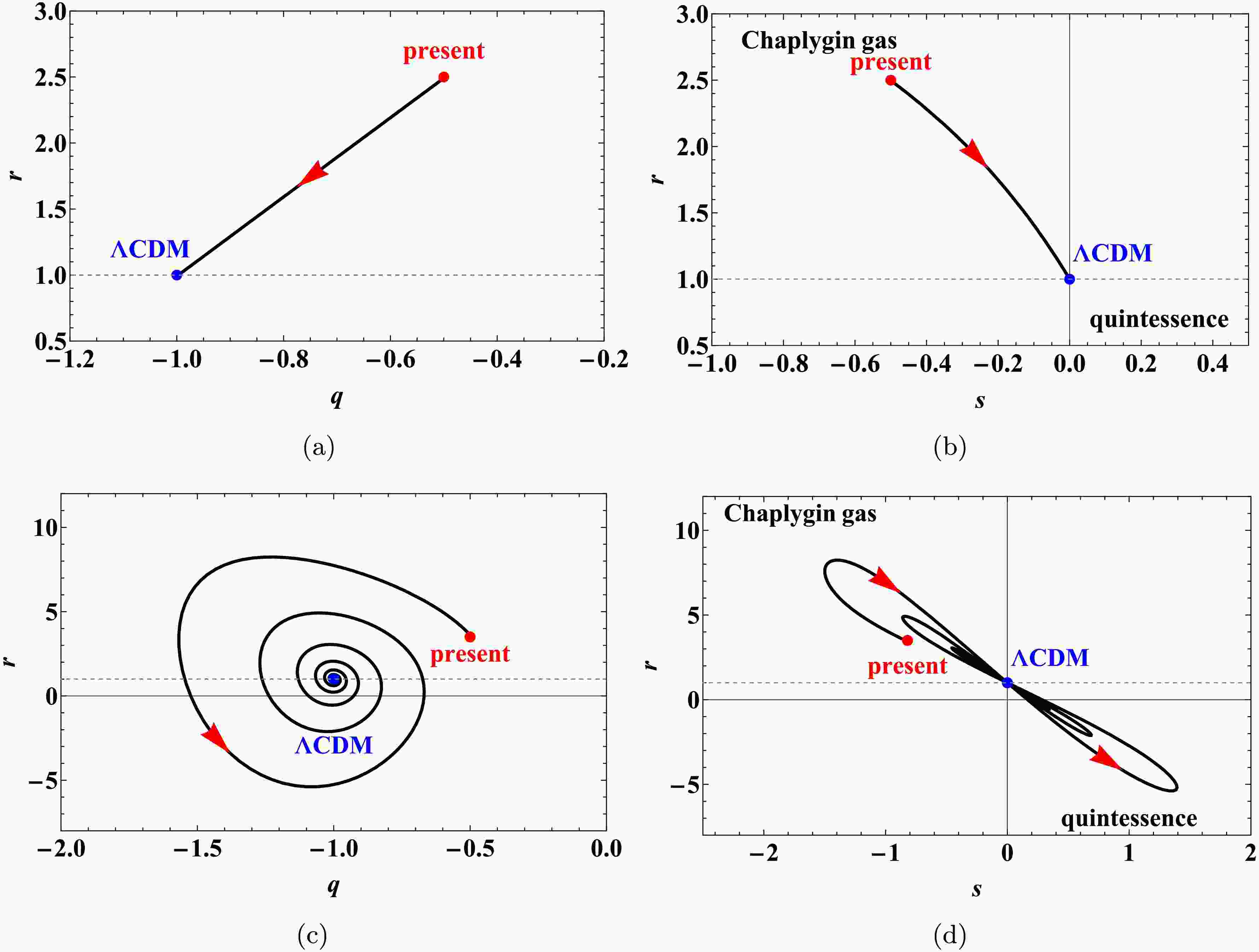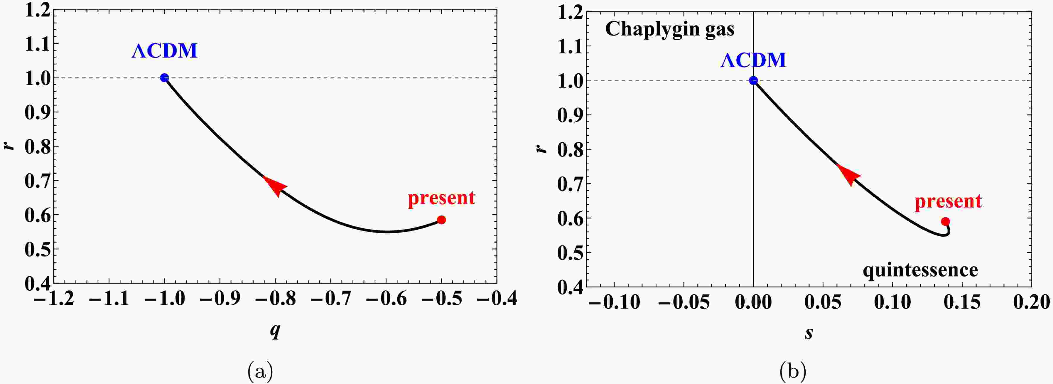 $ \bullet $ $ \{r > 1, s < 0\} $: Chaplygin gas model