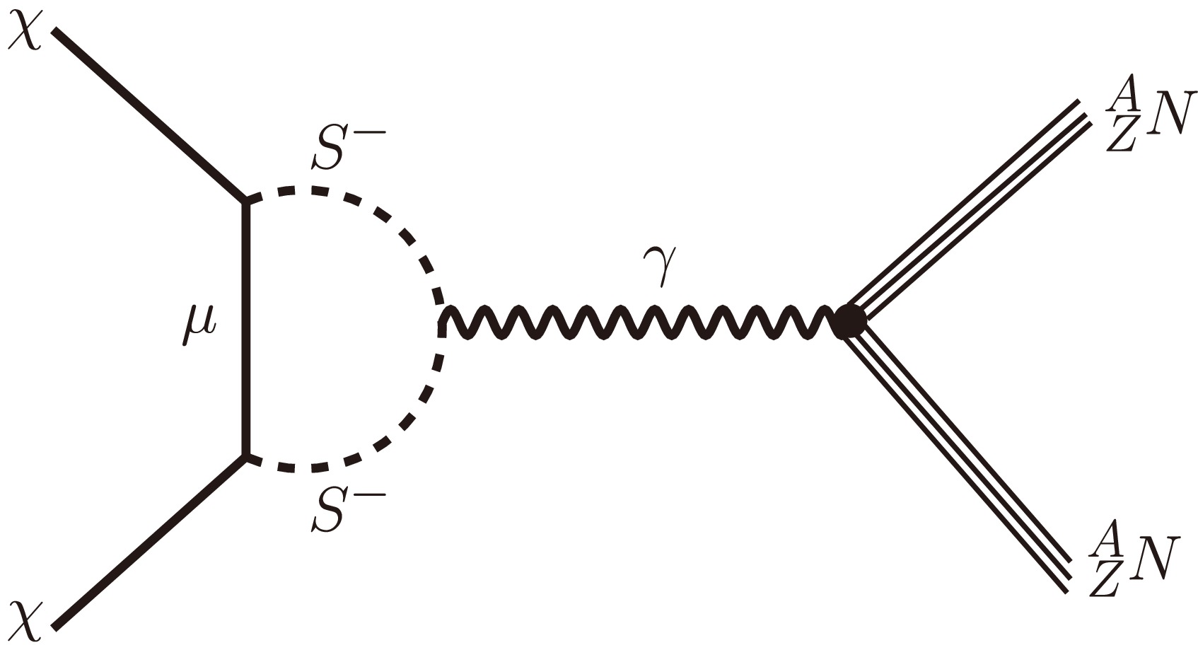 $ m_T $ ,$ m_p $ and$ m_\mu $ are the masses of the nucleus, proton and muon, respectively. Z denotes the atomic number of the nucleus. As an estimate, following Ref. [18], we take$ E_R^{{\rm{ref}}} = 10\; {{\rm{keV}}} $ , and calculate$ \sigma_{{\rm{SI}}}^{\rm{ana.}}=6.4\times 10^{-49}\; {{\rm{cm}}}^2 $ using liquid xenon as the target for$ m_\chi = 50 \; \text{GeV} $ ,$ m_S = 100 \; \text{GeV} $ and$ f_{\chi S}=1 $ . Given the sensitivities of the DM direct detection experiments [54, 55, 72], we obtain that it gives negligible contribution to the DM-nucleus cross section [37].