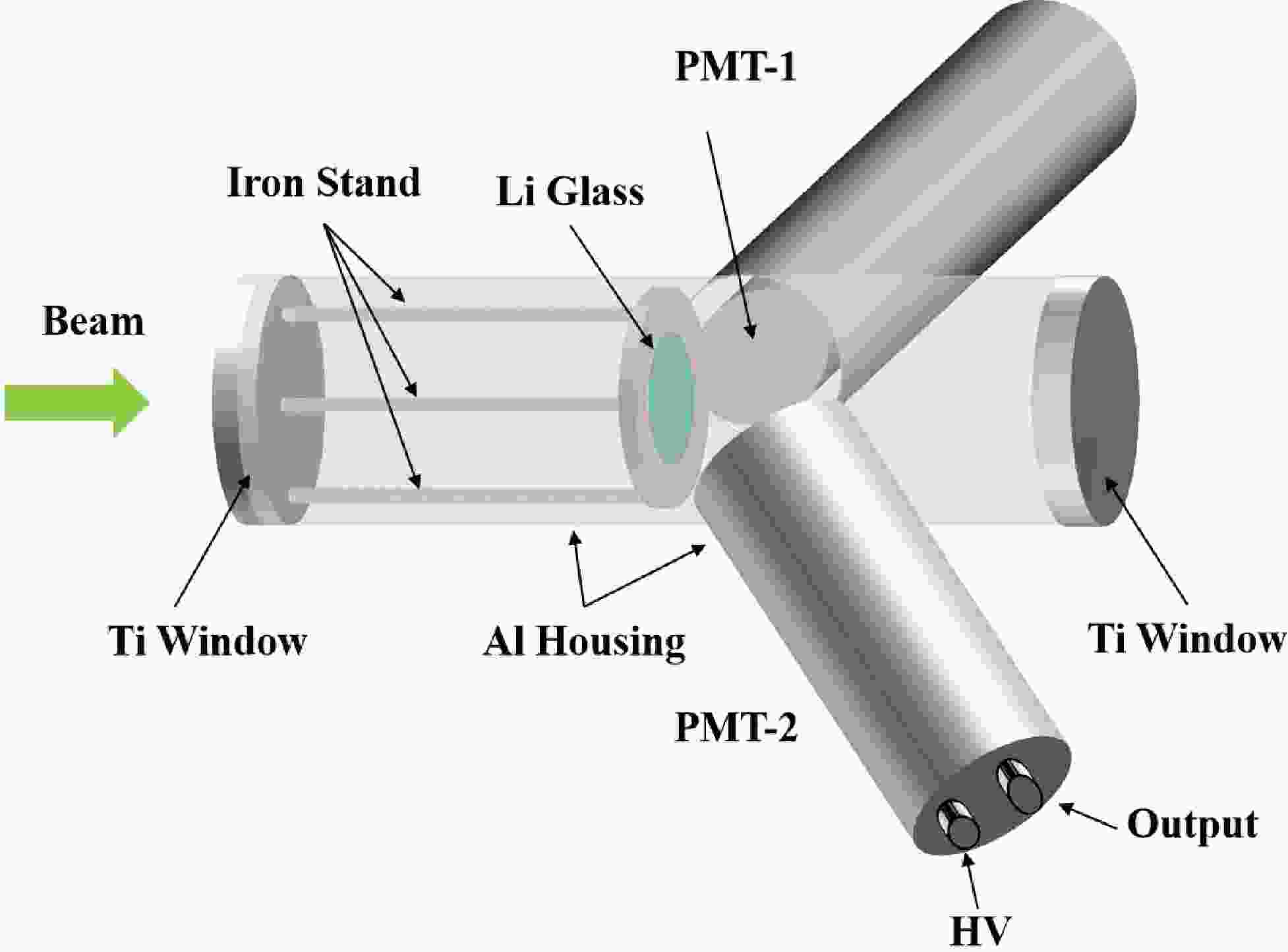 $ 60^{\circ} $ to the central axis, reducing the blinding effect of the γ-flash.The neutron detection principle of glass scintillators is based on the exothermic nuclear reaction 6Li(n,α)3H. Although both 6Li and 7Li respond to γ-ray, only 6Li performs obviously sensitivity to neutrons. The 7Li-GS detector was employed to quantify the in-beam γ-ray background, which was then subtracted from the 6Li-GS detector to accurately obtain the events of neutron-induced. Each of PMT was independently powered by a high-voltage (HV) supply, and both the PMT output signals and the pulsed proton beam signal were fed to the CAEN DT5730B for digitization.